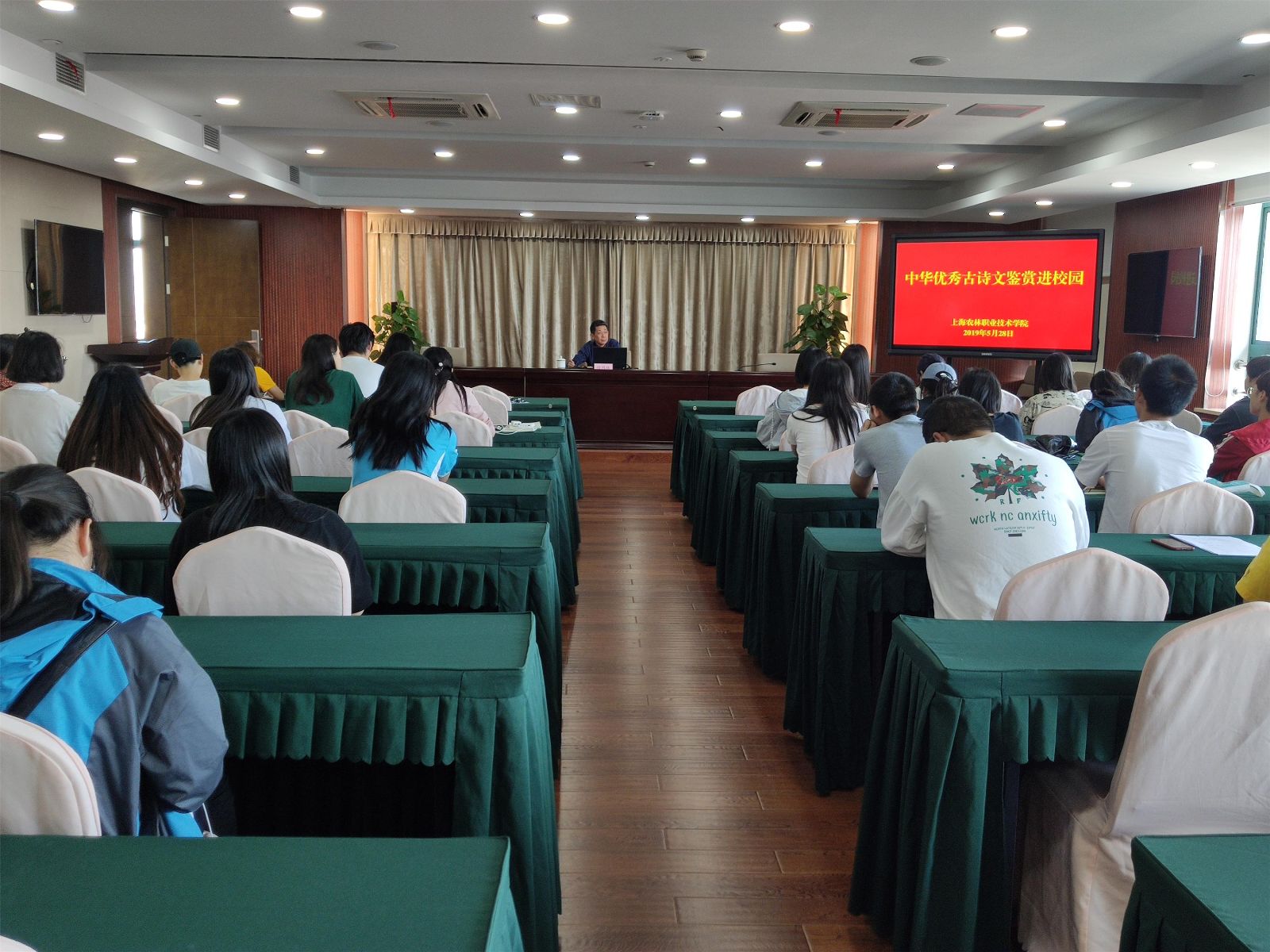 5月28日,第三十二届“上农之春”文化科技节系列活动——中华优秀古诗文鉴赏进校园活动在第三会议室举行,邀请到全国大学语文研究会副秘书长徐同林教授主讲,各系团总支书记以及100余名学生代表共同聆听了讲座。