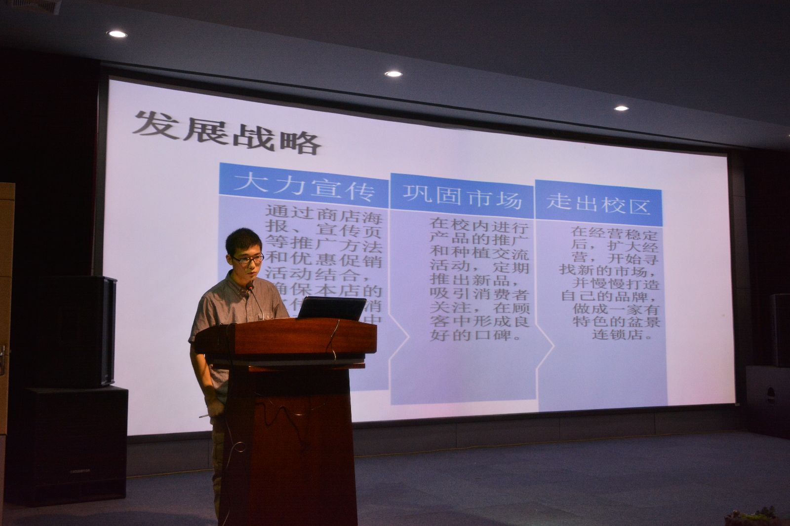 “山水食客”团队,运用互联网+的概念主要从事食用农产品的半成品加工、特色土产的销售,配合冷链配送,让消费者能便捷的购买到便宜、新鲜、安全的农产品;“星魁花艺”团队经营的项目主要有婚礼花艺布置、插花培训、公司绿化、别墅绿化、阳台花园设计,并与四家婚庆公司长期合作;“植物工厂”团队,以从事花盆容器、基质肥料、种子种苗、花卉药剂、园艺工具、装饰摆件等花卉种植所需的周边商品销售;“三滴水”工作室,为客户提供计算机软硬件维护升级服务,同时涉及平面设计及制作业务,并计划进军安防技防领域;“青瑞园艺”团队,以观赏蔬果及多肉植物为主营项目,并计划与学校基地大棚开展合作,预期在9月份推出第一批产品;“怪蜀薯烤薯”团队拟开设一家集烤薯、各种薯类加工食品和休闲学习为一体以学生与普通上班族群体为主要目标消费群体的特色小食店;“祺幻宠物小镇”团队以宠物猫为主营项目,同时开展美容及宠物寄养、用品销售业务。