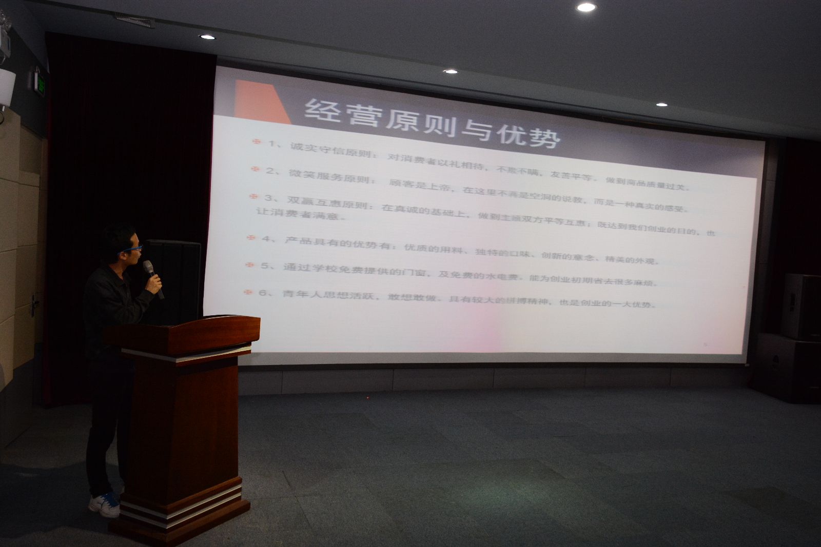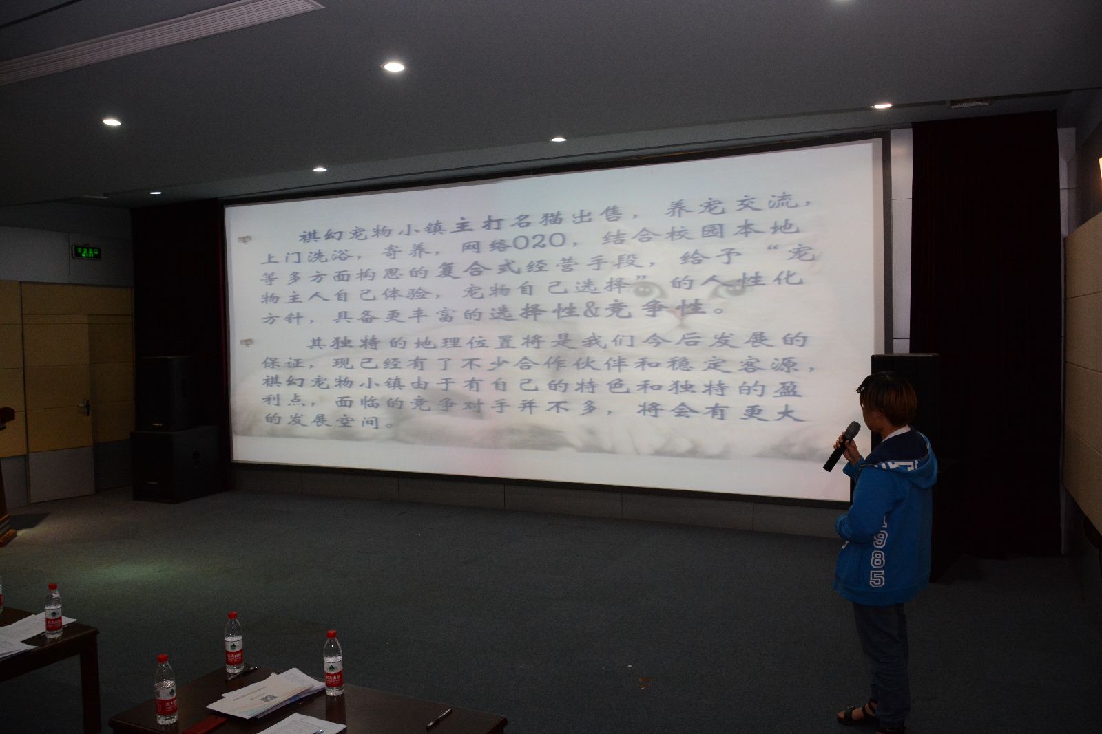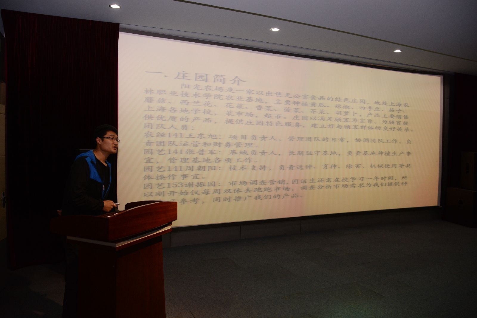 第一场答辩会共有5个基金申请项目参与答辩,经过事先的抽签排序,项目负责人依次介绍了各自项目。“阳光农场”项目希望可以申请10亩农田和资金进行有机蔬菜的种植;“真养饮品”项目主要面向师生销售鲜榨蔬果汁;“山水食客”项目希望获取资金支持将主营的半成品净菜结合自动贩售机在地铁站进行推广;“琪幻宠物小镇”计划扩充现有宠物业务,同时增设格子铺,带动更多的同学体验创业过程;“香昙水榭园艺有限公司”将定位瞄准时下广受追捧的多肉植物繁殖,利用现有大棚及掌握的进货和销售渠道大规模培育多肉植物。