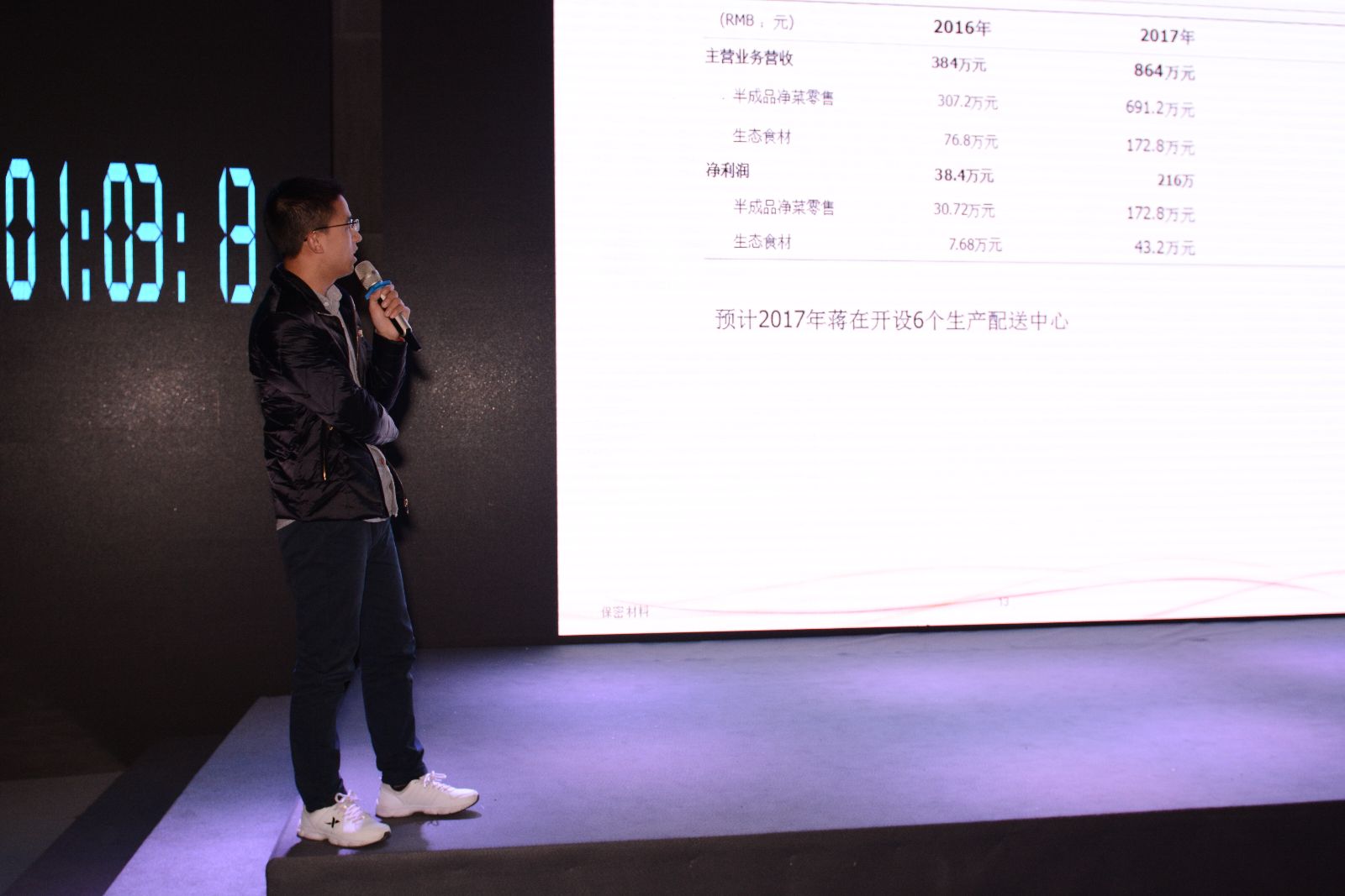 决赛现场采取项目路演的形式进行现场答辩。十个来自不同院校,涉及科技、文化、服务、设计等方面的创业项目,用1分钟的视频简介和五分钟的项目演讲向现场评委、专家做展示。蔬菜庄园项目作为现场唯一一个农业类项目,创始人涂晨阳同学用充实详尽的分析数据,精准客观的市场定位,成熟稳定的经营模式结合互联网平台营销充分向评委介绍了项目现状,项目盈利模式,未来发展。随后上海大学园精英职业技术培训学校校长周光明评委就客户扭转率产品配送等方面进行提问,对该项目的市场定位,未来前景表示肯定。