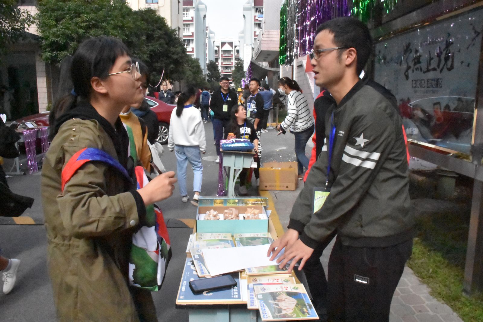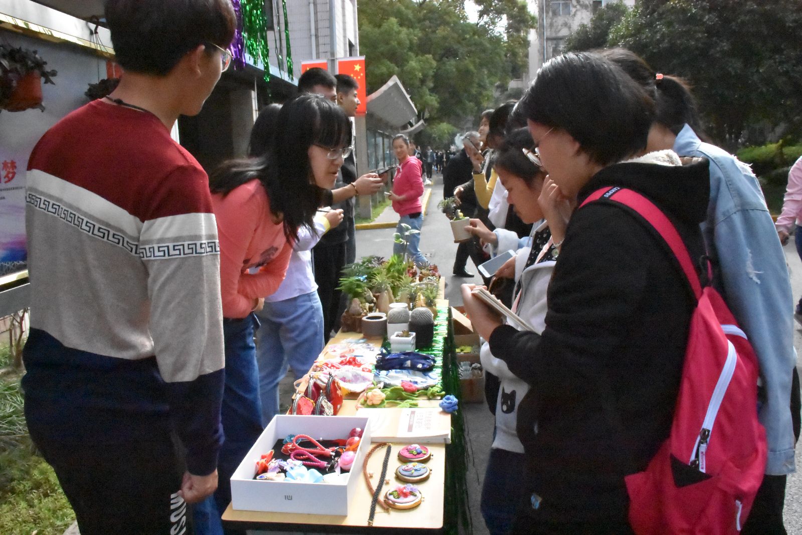 创业街模拟真实的营销场景,同学们对此热情高涨。活动当天,33个获得摊位经营权的同学在创业街各显身手。有的结合自身所学专业特色,售卖自己设计制作的组合盆栽、水族造景缸;有的售卖自己制作的手工艺品、小挂件;还有的将家乡的特产以这种方式推销给同学们。整场活动人潮涌动,气氛热烈。