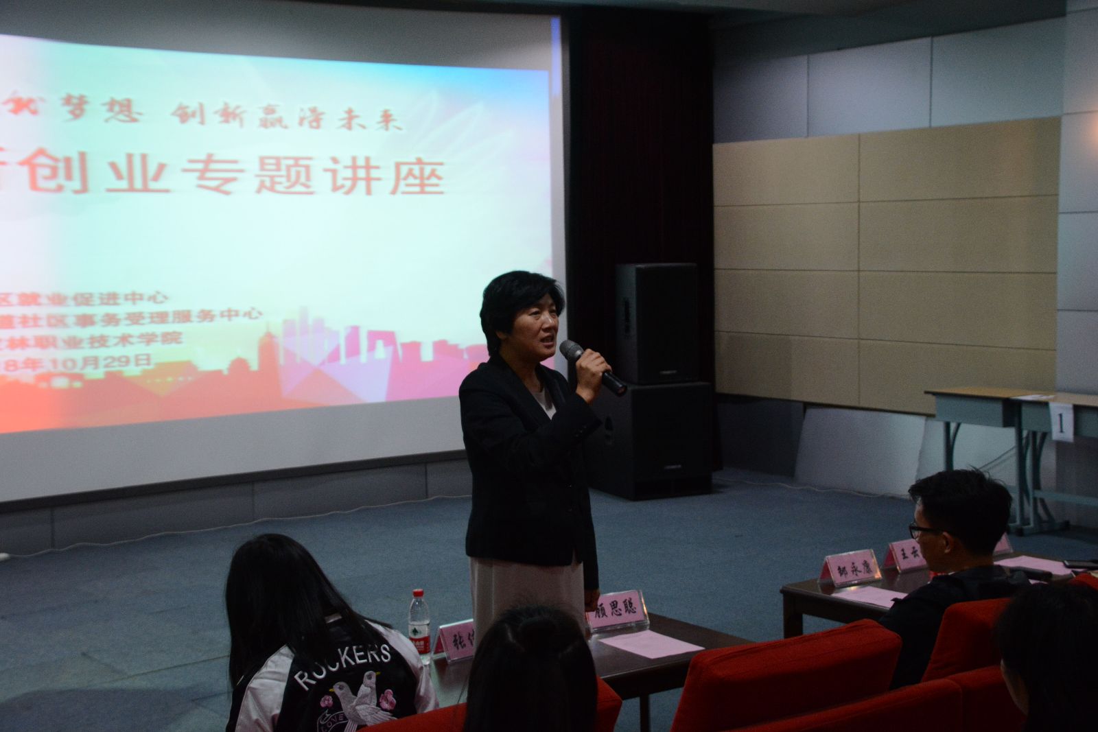 为进一步激发我院学生创业热情,培养创新精神和创业意识,提高创新创业能力,10月26日下午,由松江区就业促进中心、岳阳街道社区事务受理服务中心、上海农林职业技术学院联合在学院综合楼303室举办了岳青创——“创业成就梦想 创新赢得未来” 2018年创新创业专题讲座,学院副院长张佳敏出席,团委、各系团总支以及有创业意向的学生等66人参加了讲座。