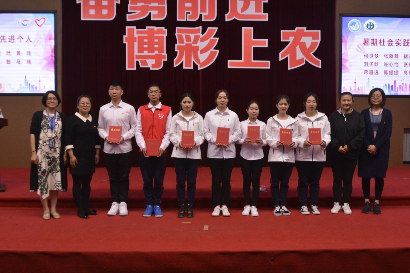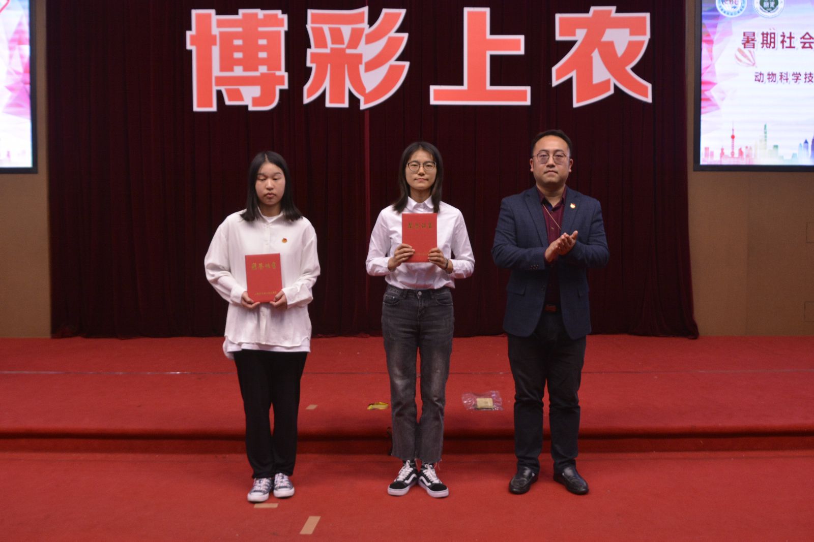 大会授予了植物科学技术系、动物科学技术系、农业经济管理系服务2018年首届中国国际进口博览会优秀组织奖荣誉称号;授予尹岚等14人暑期社会实践活动“标兵”称号,成泽亿等43人暑期社会实践活动“先进个人”称号,张琰等8人暑期社会实践活动“优秀指导教师”称号,动物科学技术系、农业生物与生态技术系暑期社会实践活动“优秀组织奖”称号。