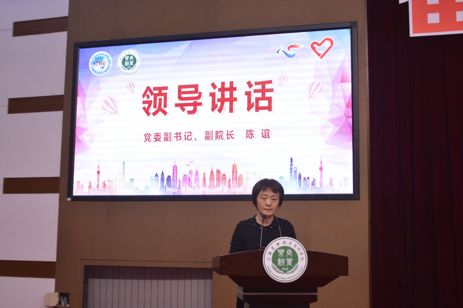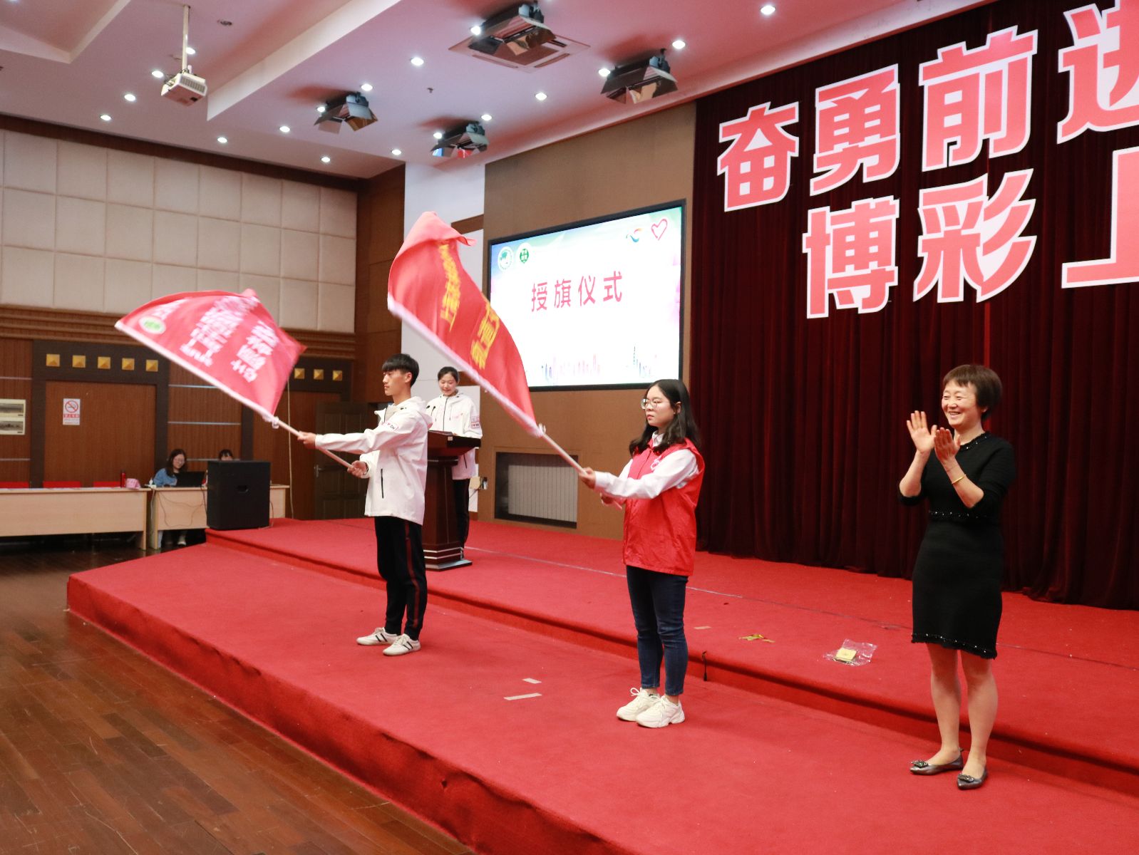 仪式上,陈谊为学院参与第二届进博会志愿者代表授旗并作讲话,对即将上岗的进博会志愿者表示美好祝愿,对受到今年暑期社会实践表彰的先进集体和个人表示祝贺。她表示学院参与第二届进博会志愿服务不仅展示上农青年的精神风貌,同时也代表着上海的城市精神和国家富有朝气和希望的青年一代。陈谊勉励全体志愿者在志愿服务中厚植爱国主义情怀;在身体力行中讲奉献、博青春;在长期实践中练就过硬本领,充分发挥专业知识和服务水平,展示上农青年的良好形象,为学校增光添彩。