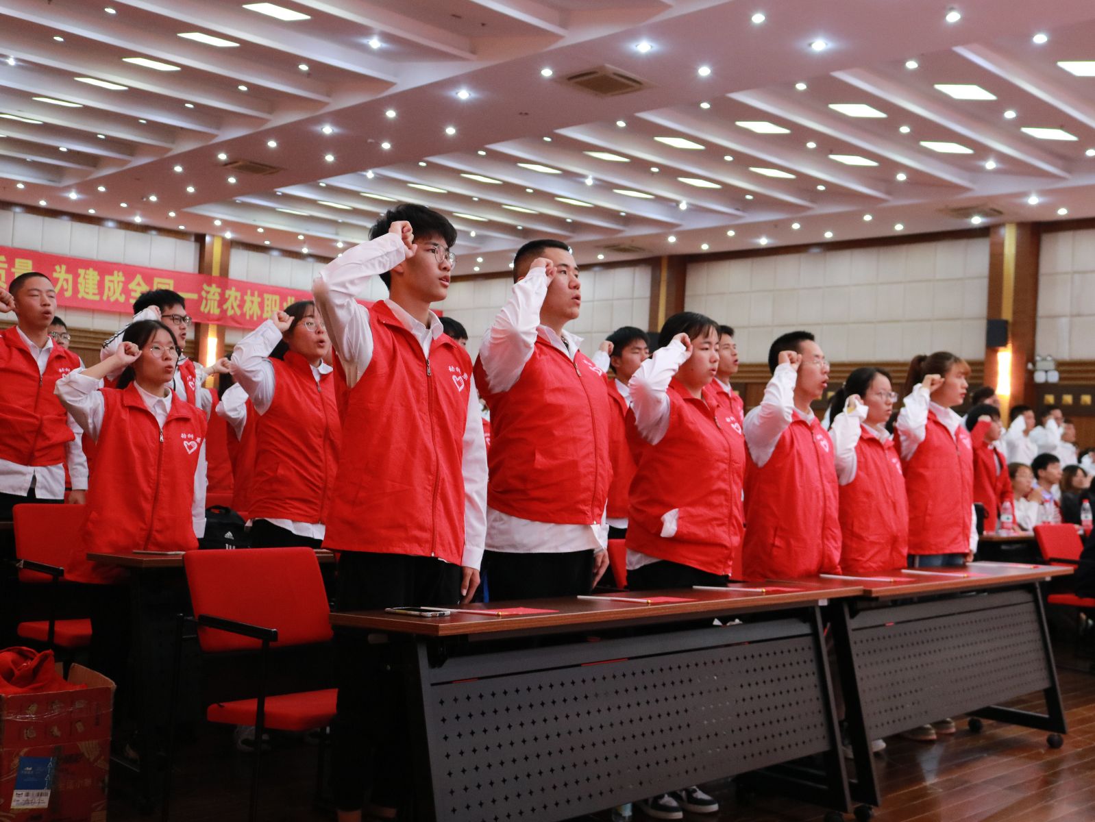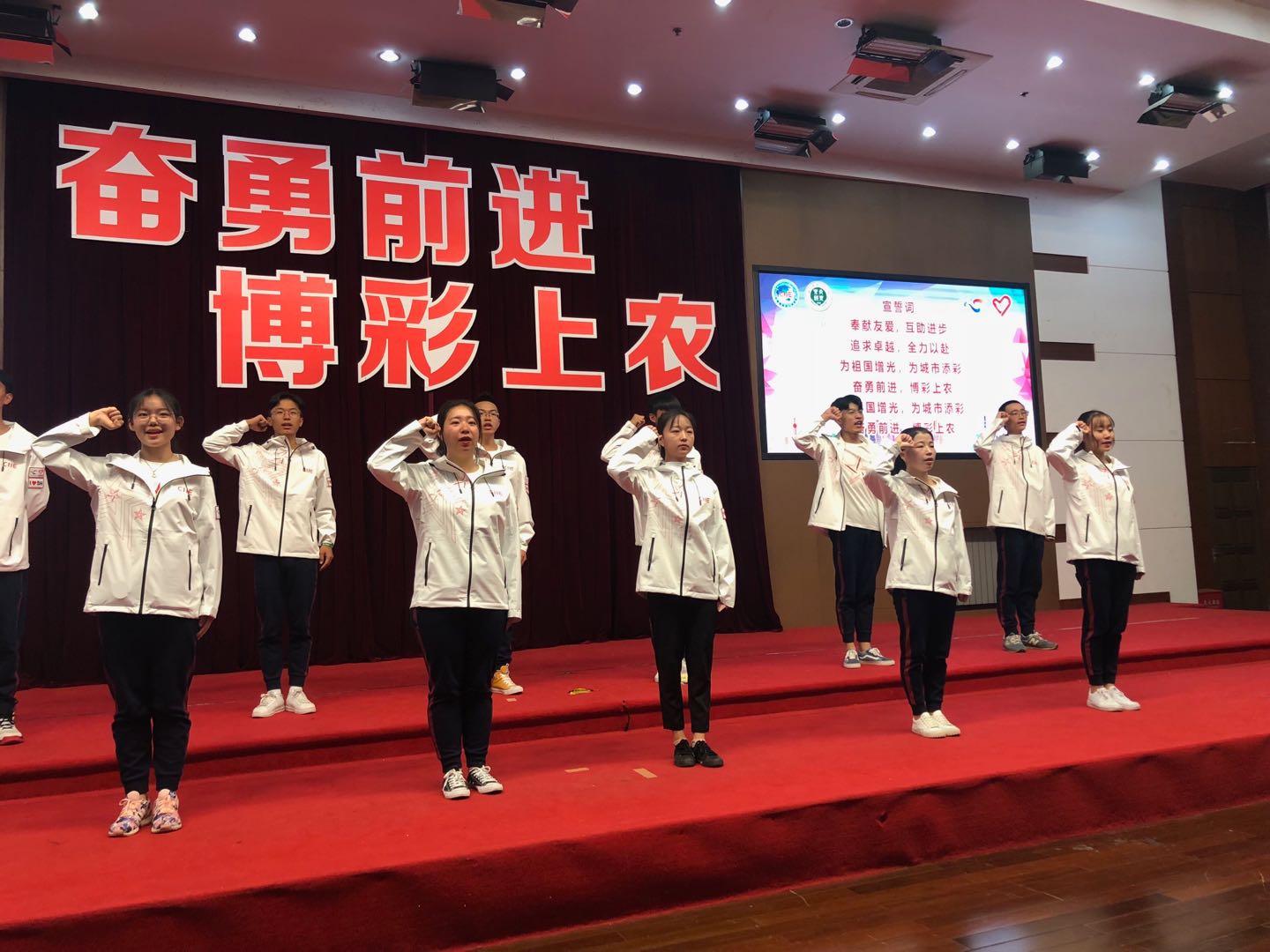 会上,院团委介绍了第二届进博会志愿者前期招募及相关筹备情况,团委负责人为志愿者服务队临时团支部授牌,旨在进一步加强对团员志愿者的思想动员和政治引领,发挥先锋模范作用。全体志愿者用最真诚、最响亮的青春之声庄严宣誓:“奉献友爱,互助进步!追求卓越,全力以赴!为祖国增光,为城市添彩!奋勇前进,博彩上农”,充分表达了志愿者们践行志愿精神、全心为第二届进博会奉献的信心与决心。