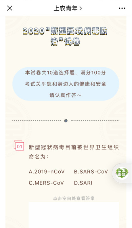 上农青年开展新冠病毒防治知识线上答题
