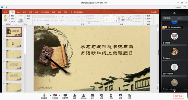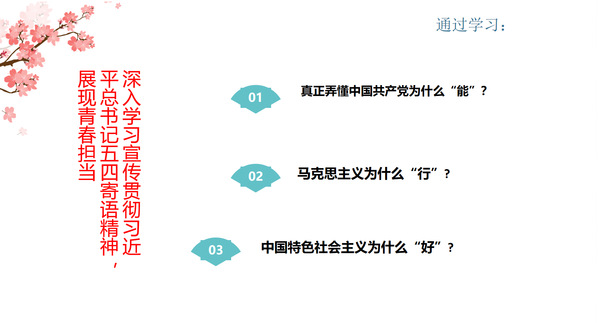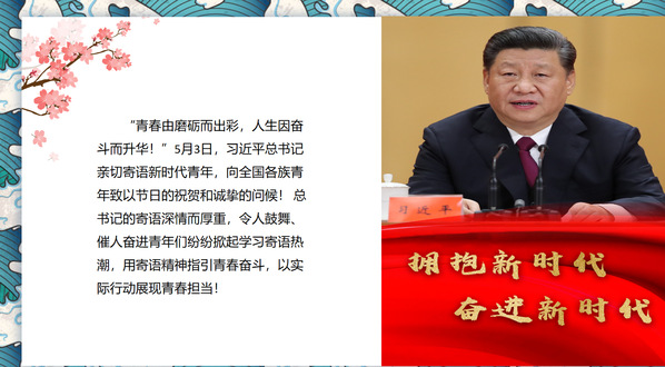 今年五四前夕,习近平总书记寄语新时代青年要坚定理想信念、站稳人民立场、练就过硬本领、投身强国伟业。为深入学习贯彻习近平总书记五四寄语精神,5月,院团委组织全院119个团支部开展“学习寄语精神,展现青春担当”线上主题团日活动。