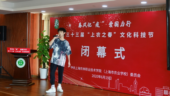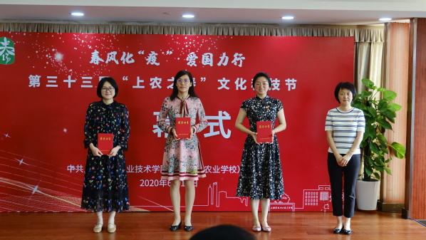 党委副书记、纪委书记俞锦禄宣读《中共上海农林职业技术学院(上海市农业学校)委员会关于表彰第三十三届“上农之春”文化科技节先进集体和先进个人的决定》,党委副书记、副院长、副校长陈谊,副院长、副校长谢锦平,党委委员、副院长、副校长王军亮,党委委员、副院长、副校长费国强为荣获各项活动一等奖师生、优秀指导教师以及优秀组织奖进行了颁奖,园林(中)172班陆喻同学、图书馆张晓霞老师和风景园林技术系曾蕊老师分别作了汇报交流与展示。