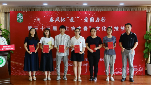 本届文化科技节以“春风化疫 爱国力行”为主题,深入学习贯彻习近平新时代中国特色社会主义思想和党的十九届四中全会精神,坚决贯彻党中央以及市教卫工作党委、市教委关于新冠肺炎疫情防控各项决策部署,充分展现上农师生在疫情防控中敢于担当、勇于奉献的精神,大力弘扬新时代爱国主义精神、全面提升科学素养和人文情怀。139名师生在“同心战疫,为爱发声”朗读活动、“战疫中成长,我的云端心晴故事——征文比赛”等8项比赛中取得优异成绩,20名教师荣获“优秀指导教师”称号,风景园林技术系、动物科学技术系、农业经济管理系荣获“优秀组织奖”。