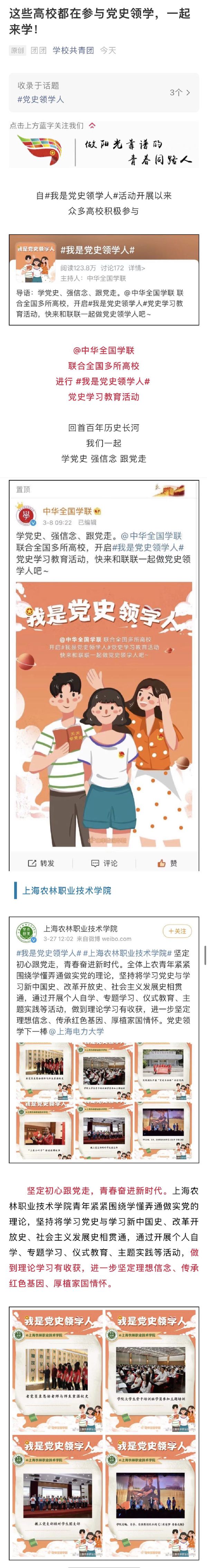 近日,学校共青团微信公众号报道我院#我是党史领学人#党史学习教育。全文如下: