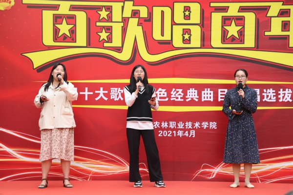 4月21日—22日,由院团委主办、农信系承办的“百歌唱百年”校园十大歌手红色经典曲目传唱选拔赛在学生事务楼广场举行,经前期报名的100余名参赛选手和现场200余名观摩师生一同参加。