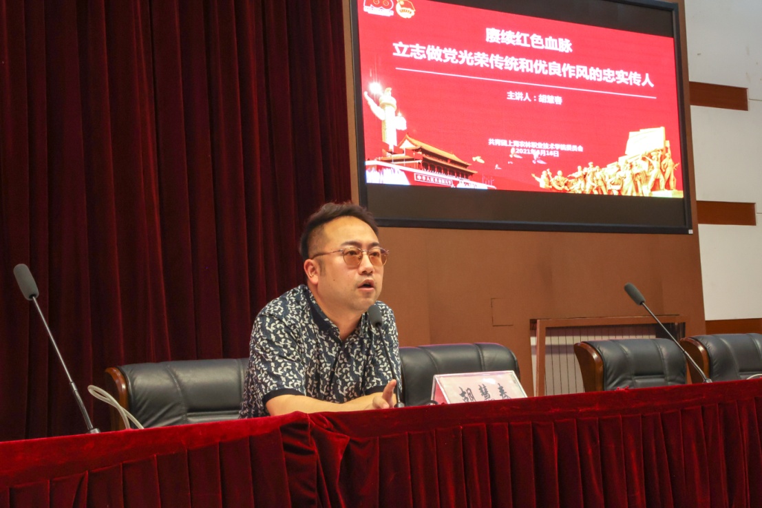 胡老师以《赓续红色血脉,做党光荣传统和优良作风的忠实传人》为主题,告诉学员们,要深入学习贯彻习近平总书记在党史学习教育动员大会上的重要讲话精神,切实把思想和行动高度统一到习近平总书记重要讲话精神和党中央决策部署上来,深入学习领会习近平总书记关于党史的重要论述,做到学史明理、学史增信、学史崇德、学史力行,立志做党光荣传统和优良作风的忠实传人,在新时代新征程中奋勇争先建功立业。