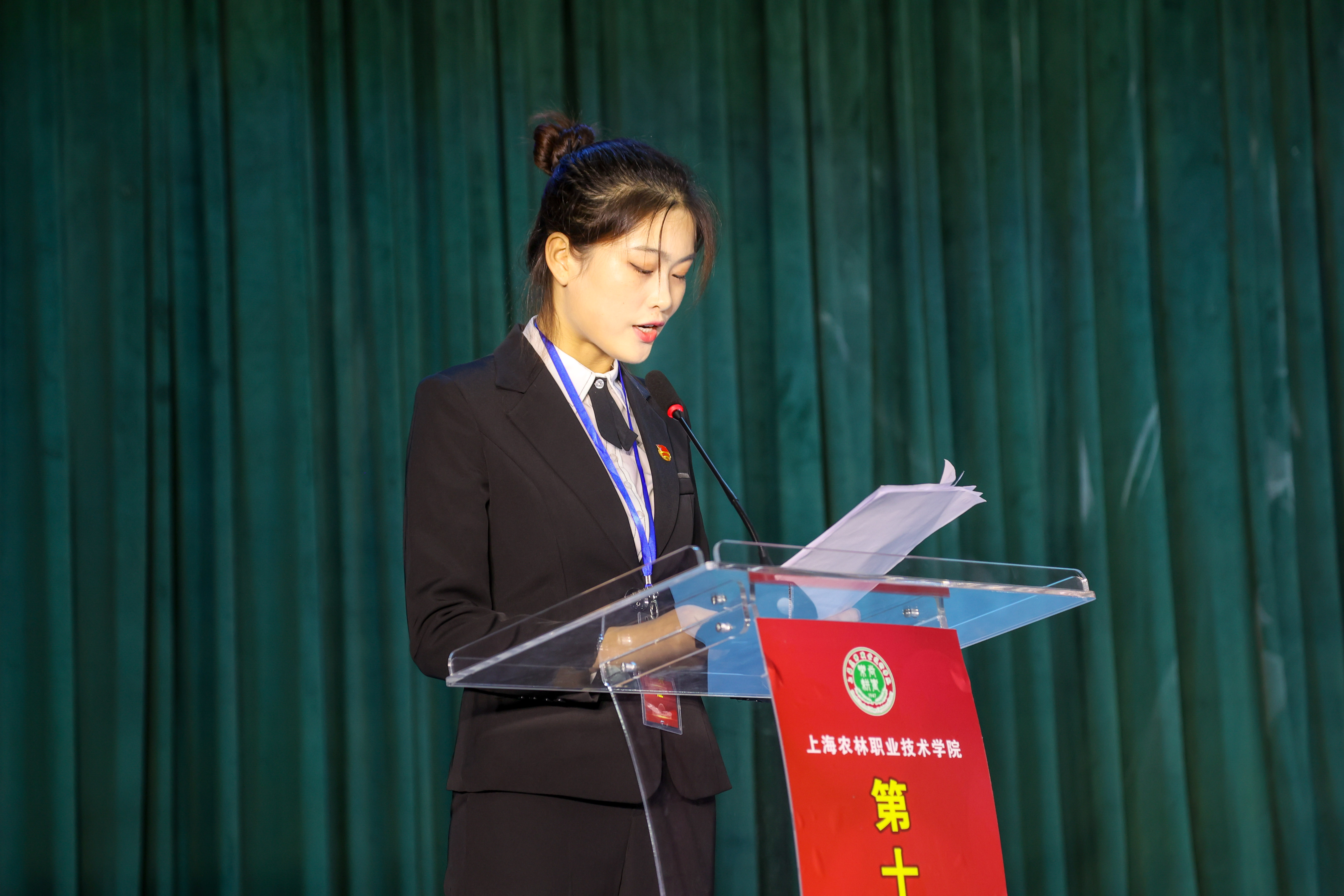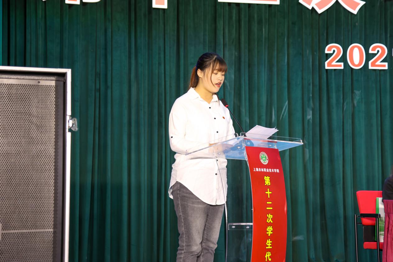 第十一届学生会负责人姚丽春同学向大会作了题为《青春耀百年,永远跟党走,坚定信念,勇担使命,为建成全国一流农林职业院校贡献青春力量》的工作报告,权益部负责人张雯倩同学作《上海农林职业技术学院第十二次学生代表大会提案工作报告》,植科系学生会负责人奚伟同学宣读大会倡议书。