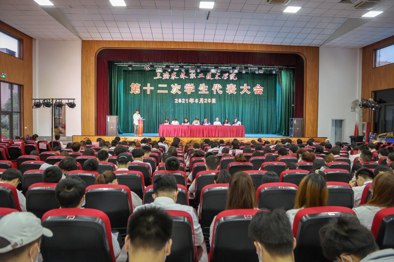 6月26日,在大礼堂,举行上海农林职业技术学院第十二次学生代表大会,党委副书记、副院长陈谊,上海市学生联合会执行主席杨君宇出席,学生处、团委、各系团总支以及196名正式代表参加大会。