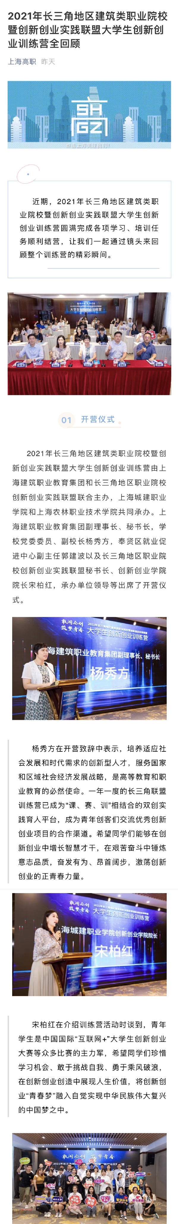 近日,上海高职微信公众号报道我院承办2021年长三角地区建筑类职业院校暨创新创业实践联盟大学生创新创业训练营,全文如下: