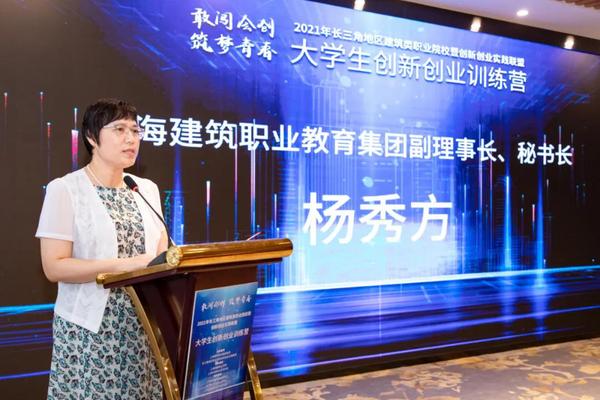 2021年长三角地区建筑类职业院校暨创新创业实践联盟大学生创新创业训练营由上海建筑职业教育集团和长三角地区职业院校创新创业实践联盟联合主办,上海城建职业学院和上海农林职业技术学院共同承办。上海建筑职业教育集团副理事长、秘书长,学校党委委员、副校长杨秀方,奉贤区就业促进中心副主任郭建波以及长三角地区职业院校创新创业实践联盟秘书长、创新创业学院院长宋柏红,承办单位领导等出席了开营仪式。