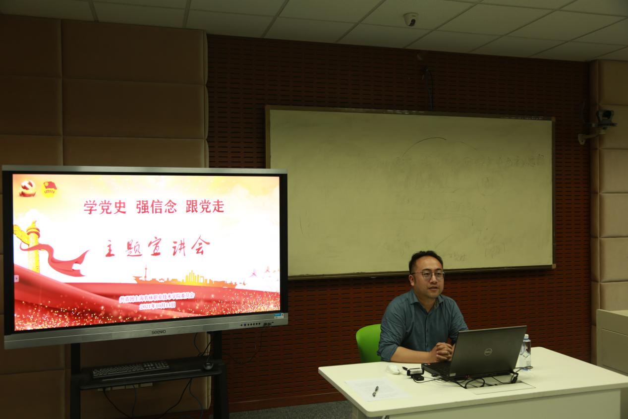为扎实推进“学党史、强信念、跟党走”学习教育,引导青年学生进一步坚定理想信念,传承红色基因,10月14日,院团委面向全体2021级新生开展“学党史,强信念,跟党走”主题宣讲,团委书记胡慧春主讲。
