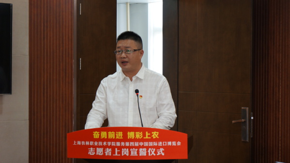 10月27日,在第三会议室,院团委举行服务第四届中国国际进口博览会志愿者上岗宣誓仪式,党委副书记、副院长邵阳出席,学生处、团委,各系团总支与全体第四届进博会志愿者一同参加。