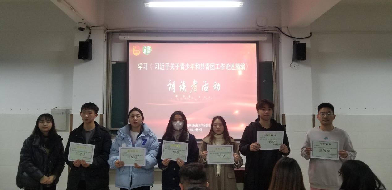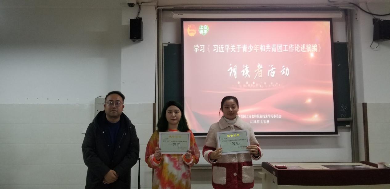 学习《习近平关于青少年和共青团工作论述摘编》是院团委开展党史学习教育的重要内容,前期已组织各团支部通过学习座谈、撰写感悟心得、线上朗读等形式加深学习。此次线下活动共45名学生参加,大家以朗读的形式举行,分别摘取《论述摘编》的某一段论述进行朗读,并现场阐述自己的学习体会。园艺202班梁郁说到:“我在朗读的时候带给我很大的震撼,习近平总书记的语言,平实中蕴涵着大智慧,更有一种透彻、直指人心的力量。不忘初心,方得始终。我要把习近平总书记的嘱托牢记于心,外化于行,努力成长成才,为祖国增光、为学校添彩。”动医211班岳雯讲到:“我们青年大学生应该把个人的理想信念同国家的前途、民族的命运相结合才有价值,个人的信念追求与社会需要和人民利益相一致才有意义。作为一名共青团员,我将以此次学习为新起点,进一步贯彻落实党的十九届六中全会精神,始终听党话、跟党走。”旅管211班的胡磊同学说到:“学习了《论述摘编》,我觉得习近平总书记对我们当代青年充满信任,这让我感到很兴奋。《论述摘编》一书用真理的魅力征服了我们年轻人,用真情实感打动了我们年轻人。”最终,园艺202班梁郁同学与动医211班岳雯同学荣获比赛第一名。