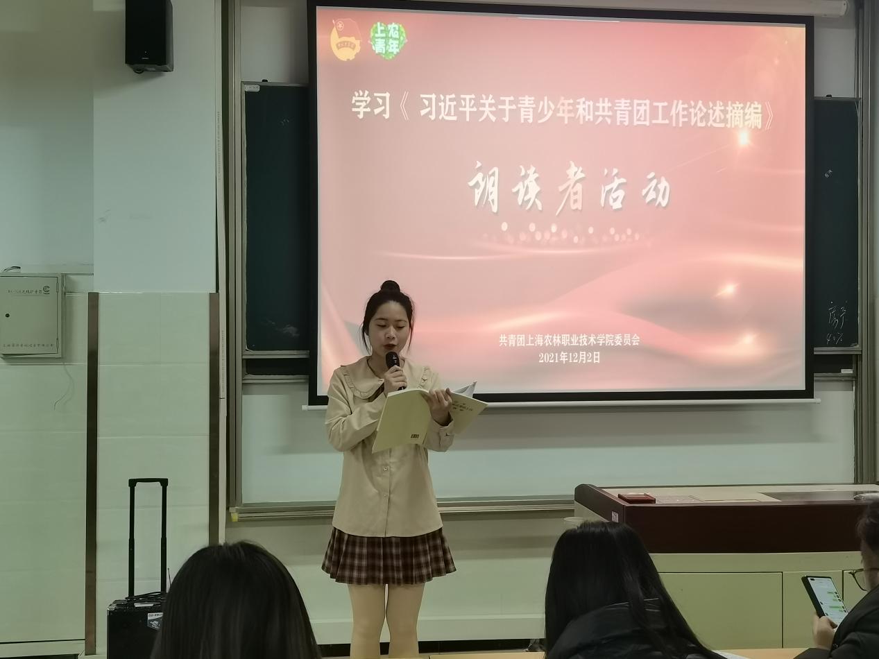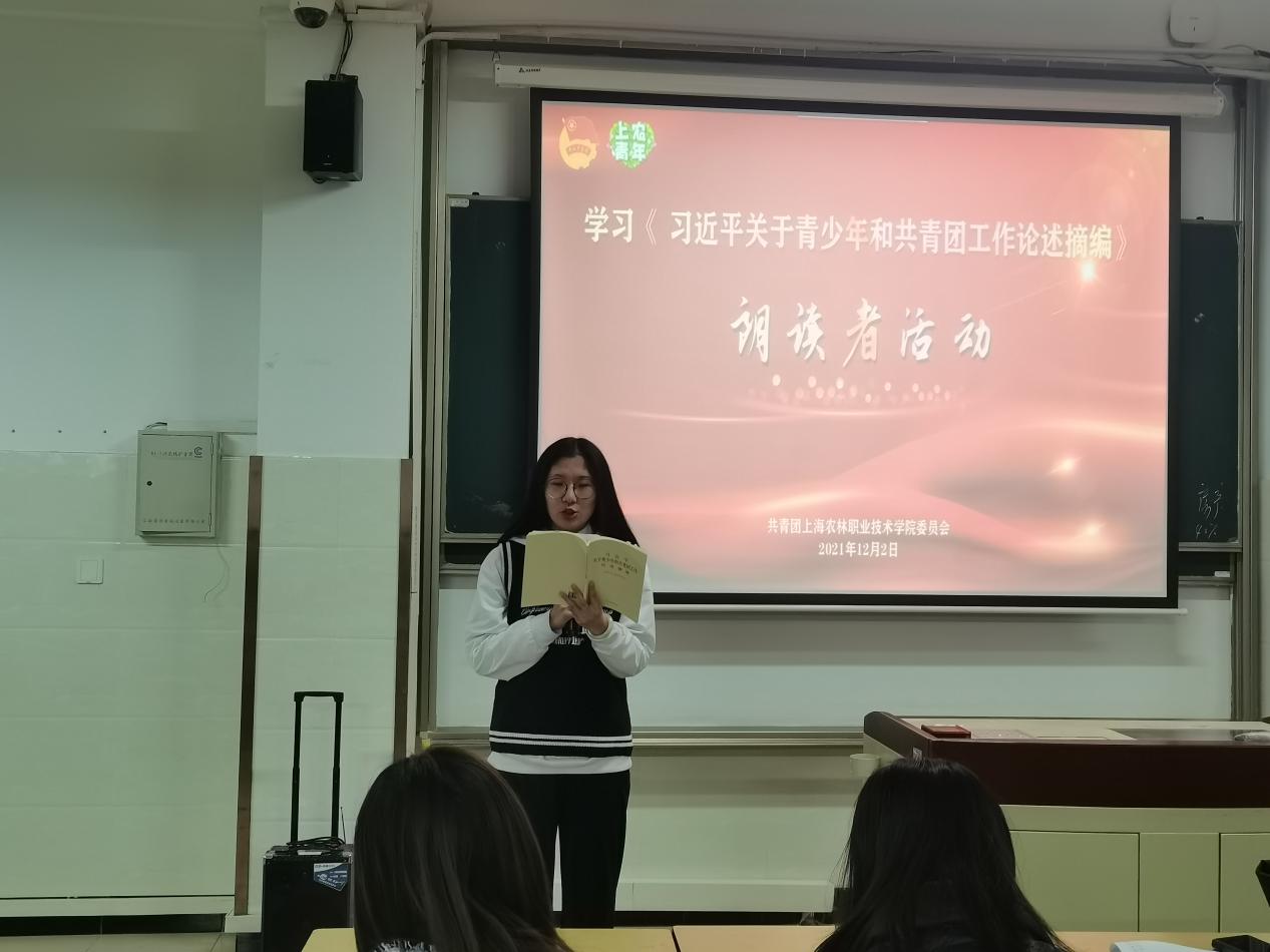 为深入学习贯彻习近平总书记关于青年工作的重要思想,推进党史学习教育走深走实,12月2日,在第一教学楼413教室,院团委举办学习《习近平关于青少年和共青团工作论述摘编》朗读者活动,团委负责人、参赛学生及师生代表等100余人参加活动。