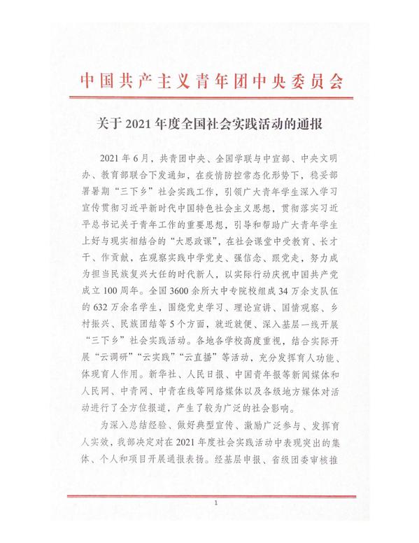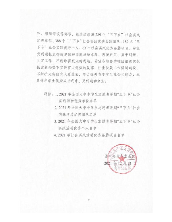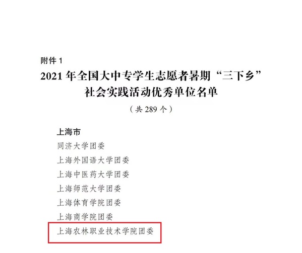 近日,团中央青年发展部下发《关于2021年全国开展的2021年全国大中专学生志愿者暑期“三下乡”社会实践活动的通报》,我院团委获评为“全国大中专学生志愿者暑期‘三下乡’社会实践活动优秀单位”荣誉称号,为上海高职唯一。