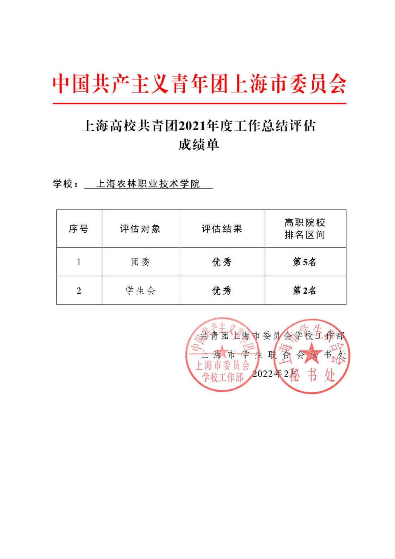近日,共青团上海市委员会学校工作部、上海市学生联合会秘书处公布了2021年度上海高校共青团工作总结评估成绩单,学院团委、学生会考核成绩均为“优秀”,这是我院团委第四年获得优秀。