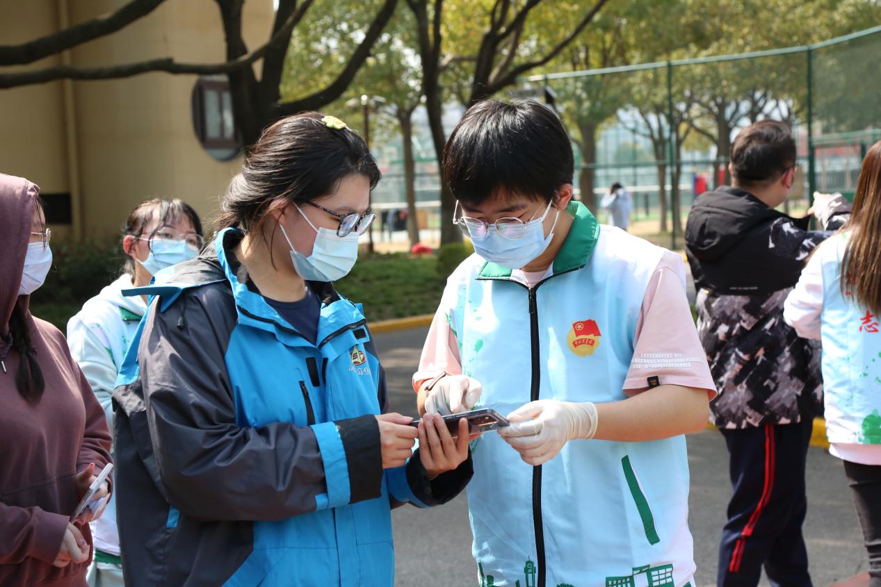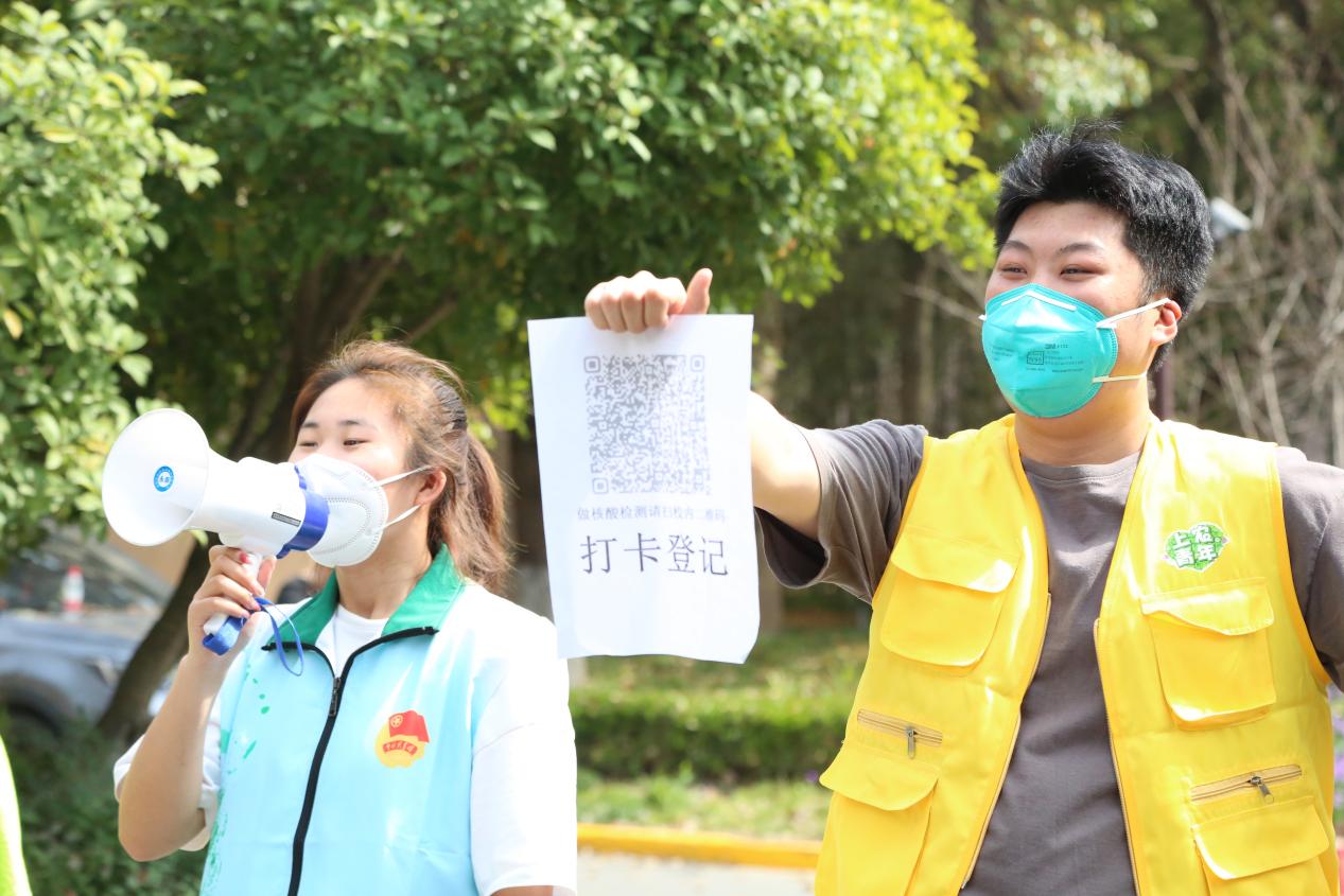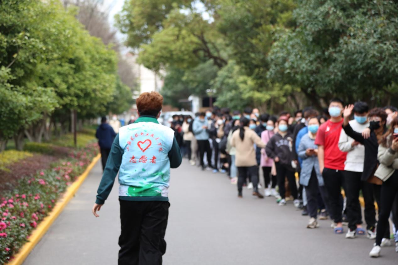 “同学你好,请打开健康云登记,调到最亮;大家请佩戴口罩,保持一米间距。”每次进行核酸检测,这句话不知被重复了多少遍。来自环境191班张雨欣同学加入到核酸检测引导志愿者的队伍中。这是她第一次参与抗疫志愿服务。“这里有学生、老师、后勤管理人员,还有许许多多我不认识的人。每次我喉咙都会喊哑,但是同学们都非常理解我们,这也让我们的工作进展十分顺利,希望疫情的“雾霾”早些过去,大家都能像往常一样,加油!”