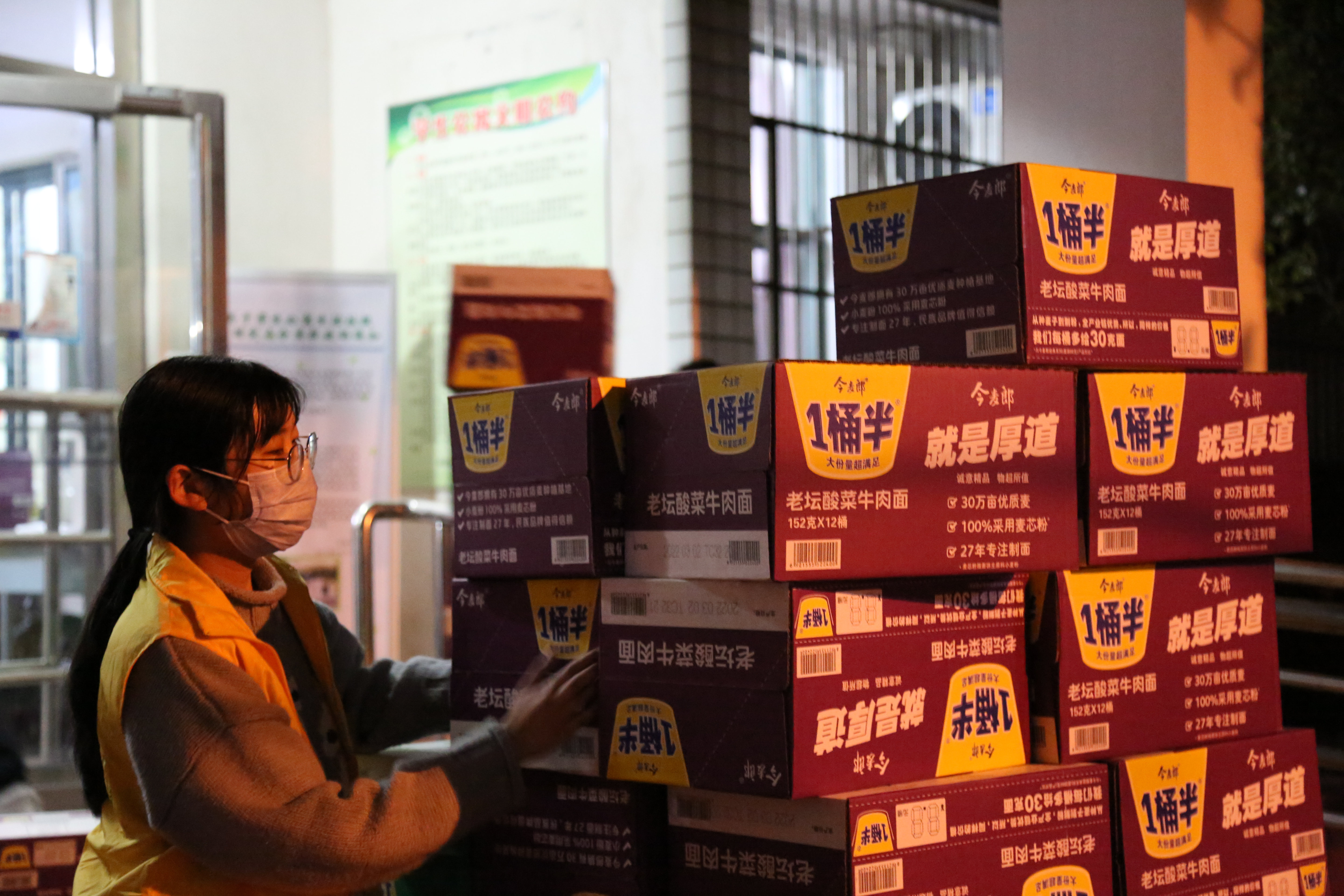 “同学你好,需要几份饭菜?”每天早中晚三餐、还有宵夜,来自学院易班的刘晨旸同学都会接过食堂送来的饭菜,清点后通知自己楼内的同学下来领餐。这样的动作和话语她每天都要重复几十次。刘晨旸说:“疫情可以阻挡我们出行的脚步,但是不能阻止爱和温暖的传递。”虽然一次次重复着这些工作,难免疲惫,但是一句句“谢谢”“辛苦啦,小姐姐”,使她因自己的工作受到肯定而倍感满足。秦文静还表示,她仍会毫不犹豫地加入志愿者队伍,为早日恢复正常的校园生活而默默坚守。