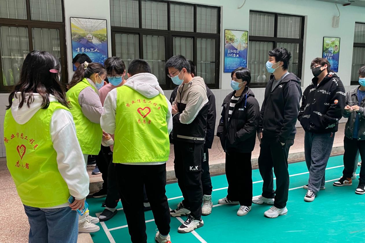 智慧农业工程系志愿者服务队迅速集结,有序分工,线上线下服务于系部疫情防控的相关工作。在线下,无论是走读生住的农信楼机房,还是封闭管理的宿舍楼,都有“绿马甲”的身影:每日送餐,搬运和发放物资,维持核酸检测队伍秩序,出入人员登记,组织排队洗澡等,“绿马甲”成为疫情防控网格化管理中的一条条细线,密织出疫情防控的屏障。志愿者们还推出了以“共同抗疫”为主题的“记录大学美好生活·隔离期间花样多”线上系列活动,提升同学们共同抗疫的凝聚力和信心。智工系学子用实际行动诠释着抗疫志愿者的担当与责任。