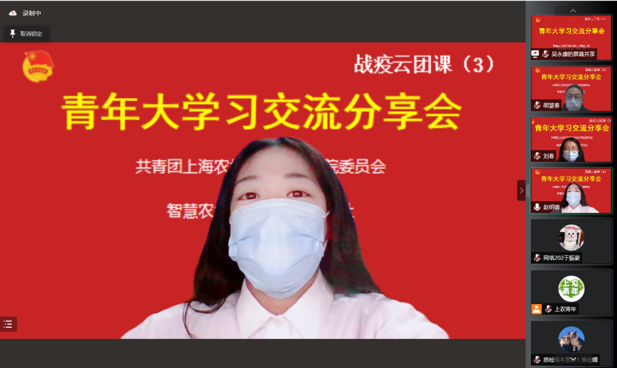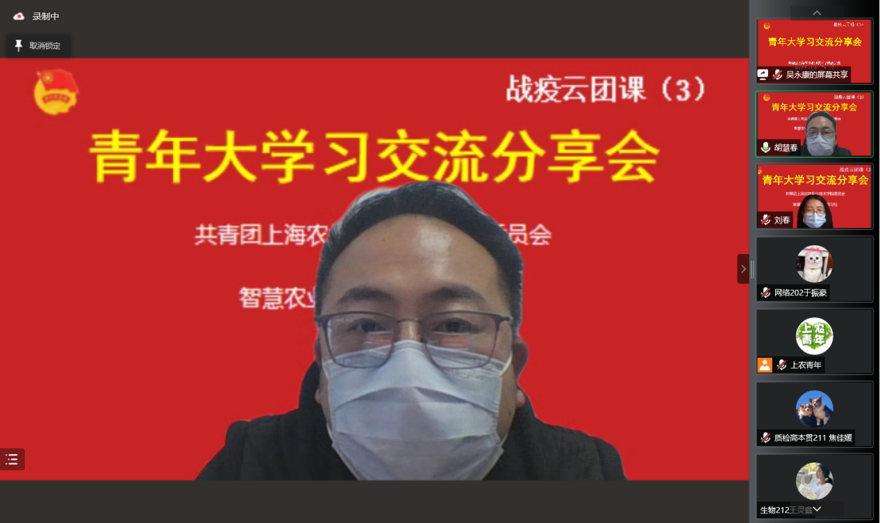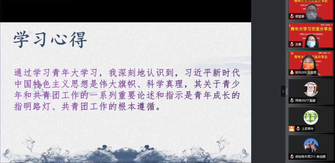 4月14日,院团委、智工系三信研习社联合开展第三期战疫云团课,就团员青年参与青年大学习开展交流分享。院团委、智工系团总支、各系入团积极分子、三信研习社社员、团员青年代表等共计200余名学生在线观看,交流学习心得。