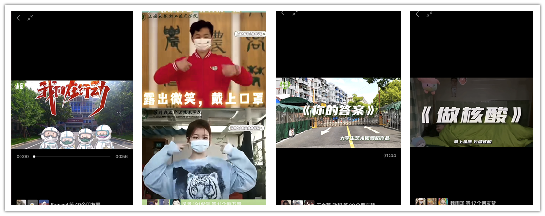 在院团委、学生会的组织下,广大上农青年紧扣疫情防控的主题,发挥拍摄、绘画、书法、舞蹈等特长,创作了传递温暖的优秀征文、海报、书法、微视频、原创歌曲、手势舞等作品60余个,用“学、写、说、唱、舞、绘”等形式发出铿锵有力的青年之声,以青年学生喜闻乐见的方式弘扬积极健康的战疫正能量。其中“战疫手势舞”通过视频号与苏州农业职业技术学院开展互动;“上农青年 同心战疫”海报组图,“上农青年在行动”“你的答案”“做核酸”等舞蹈作品被青春上海微信公众号、上海松江视频号、青春松江、七彩岳阳微信公众号等转载、报道,亦是体现青年视角下的青年担当、青年力量,流淌着守望互助的成长感悟。