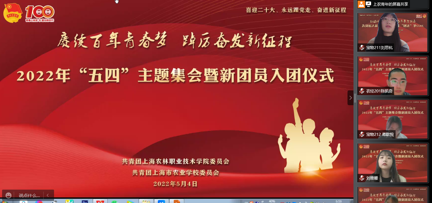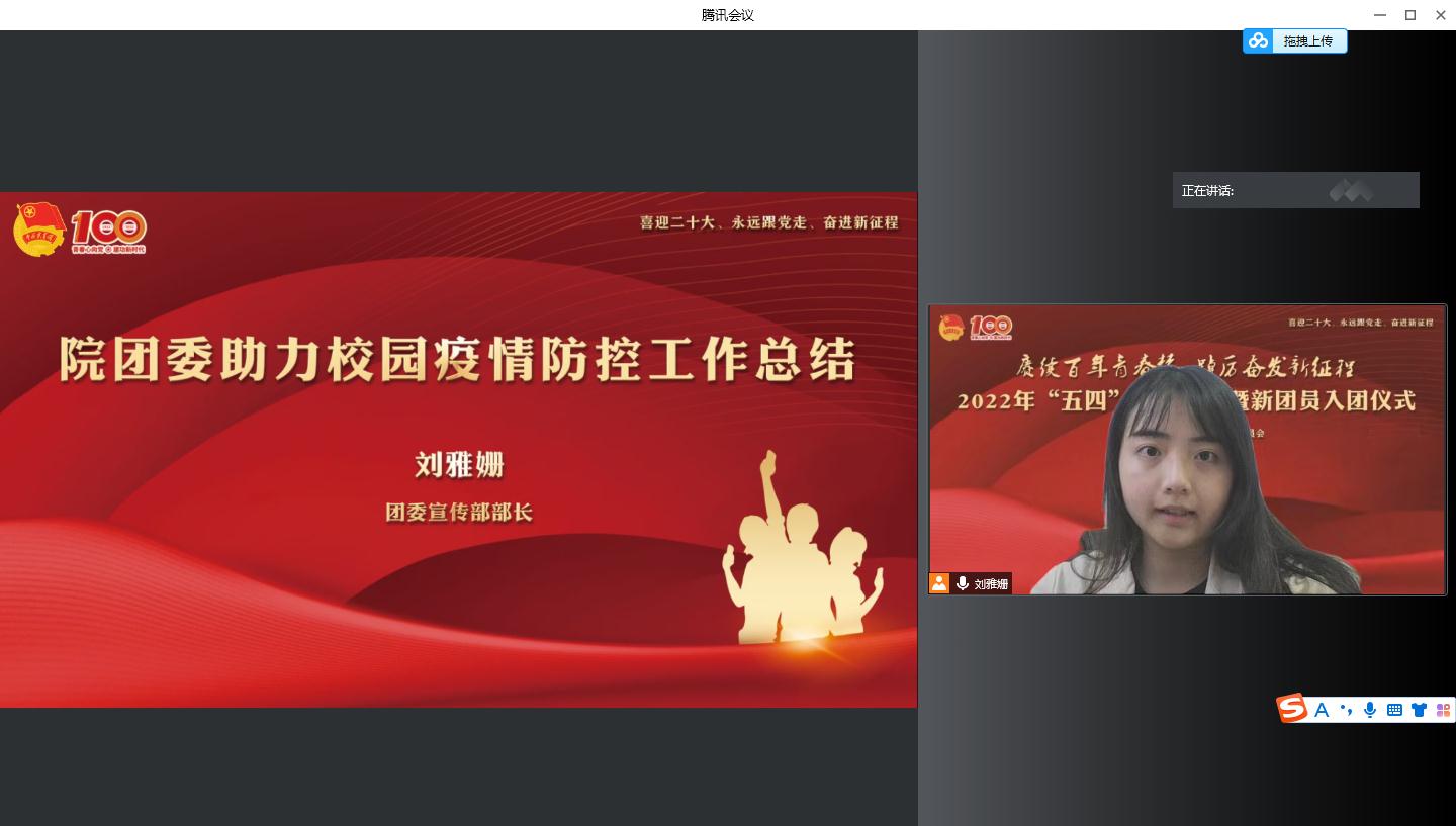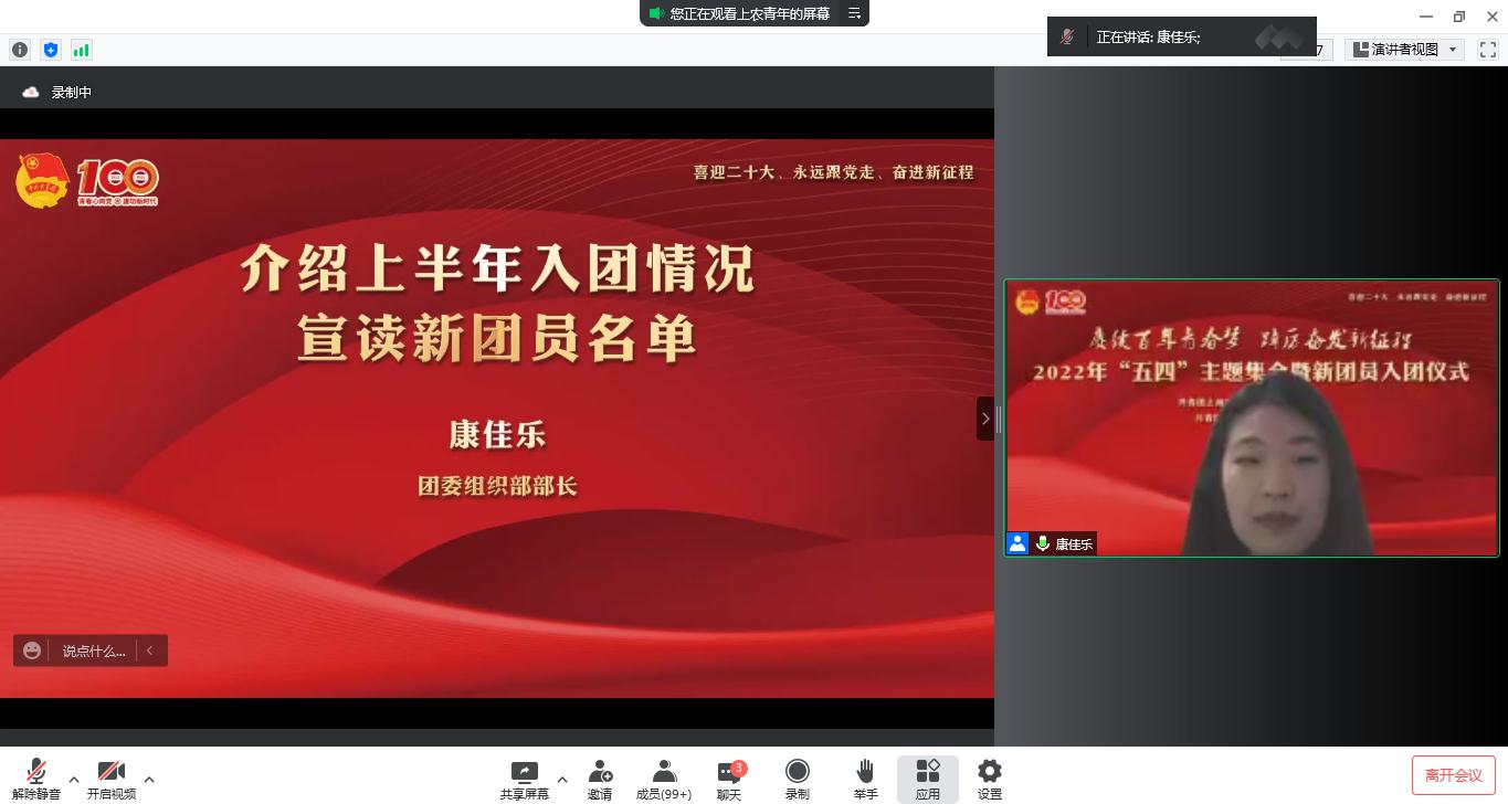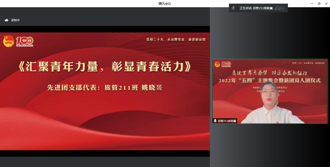 为迎接党的二十大,学习贯彻习近平总书记在中国人民大学考察时的重要讲话精神,庆祝中国共青团成立100周年,5月4日上午,院团委在线上举行“赓续百年青春梦 踔厉奋发新征程”2022年“五四”主题集会暨新团员入团仪式。党委副书记、副院长、副校长邵阳出席,学生处、团委、各系团总支、获奖集体和个人代表等200余人和25名新团员参加集会。