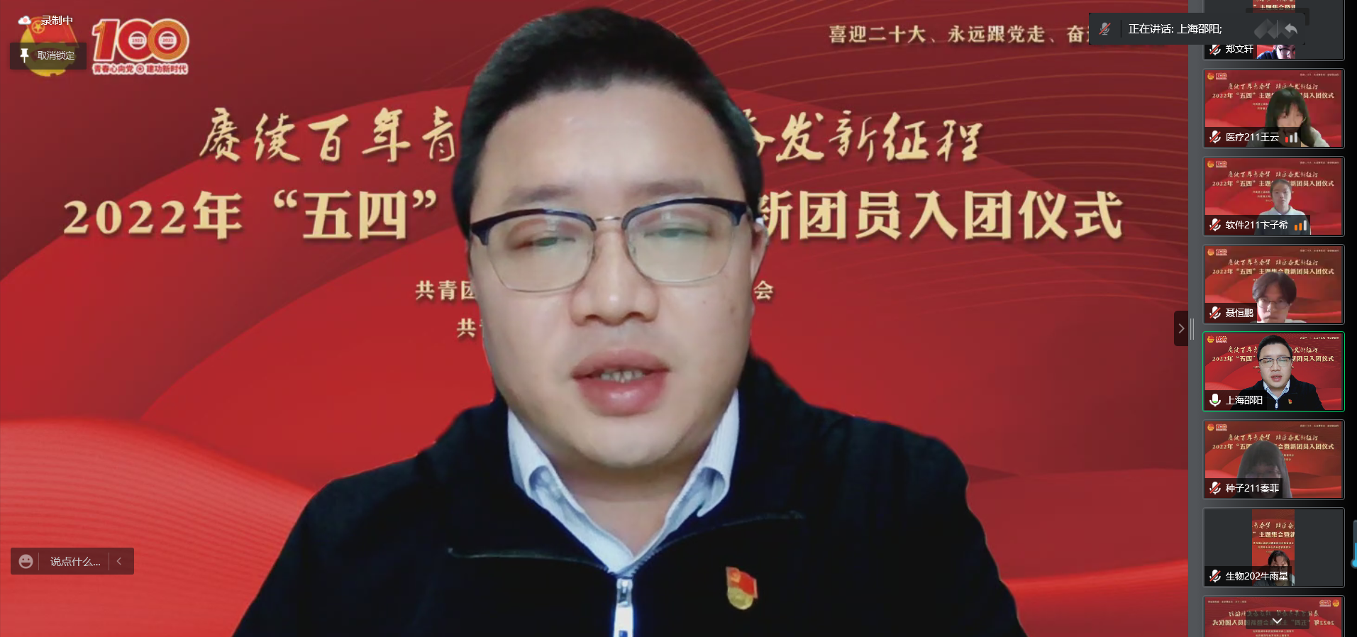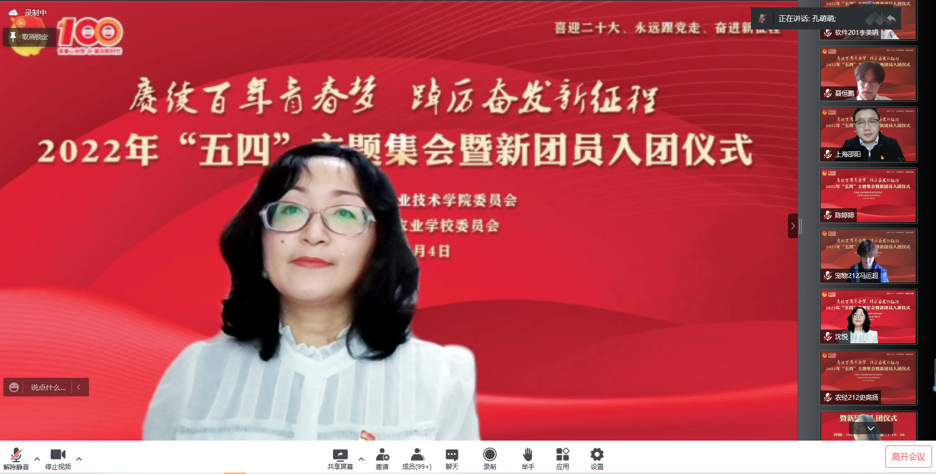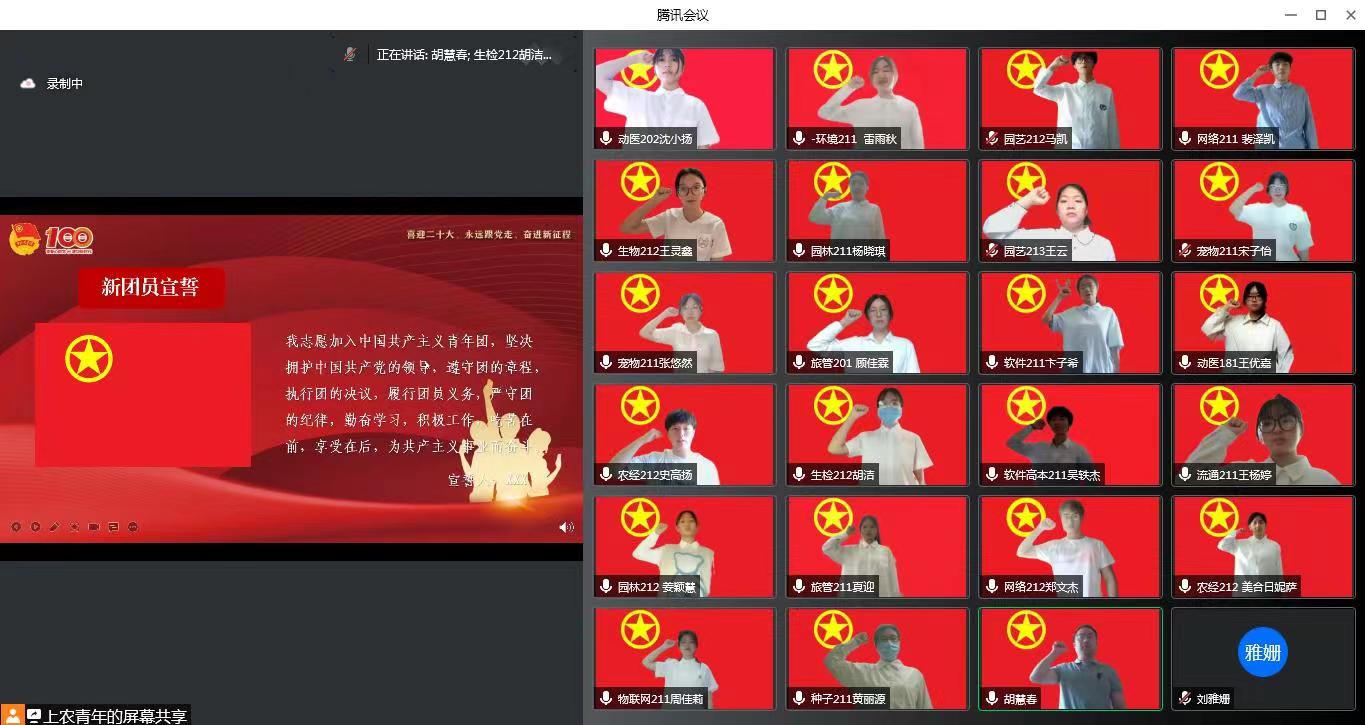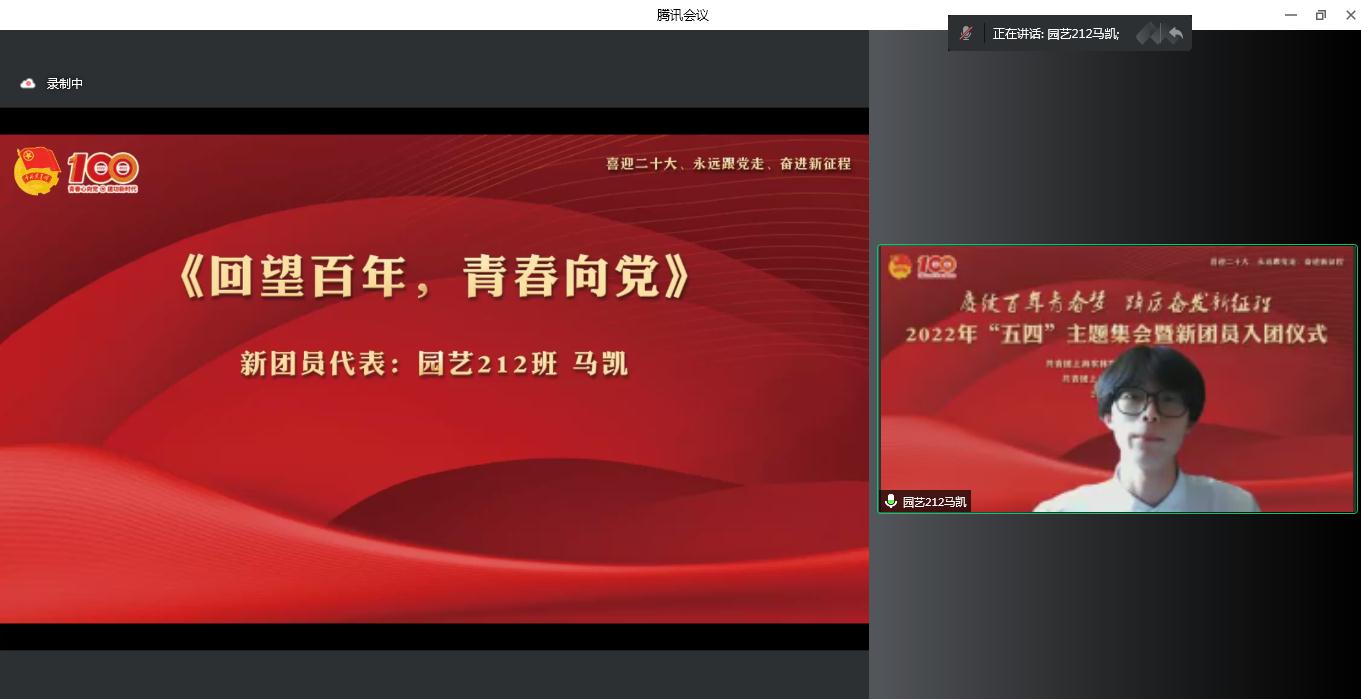 为迎接党的二十大,学习贯彻习近平总书记在中国人民大学考察时的重要讲话精神,庆祝中国共青团成立100周年,5月4日上午,院团委在线上举行“赓续百年青春梦 踔厉奋发新征程”2022年“五四”主题集会暨新团员入团仪式。党委副书记、副院长、副校长邵阳出席,学生处、团委、各系团总支、获奖集体和个人代表等200余人和25名新团员参加集会。