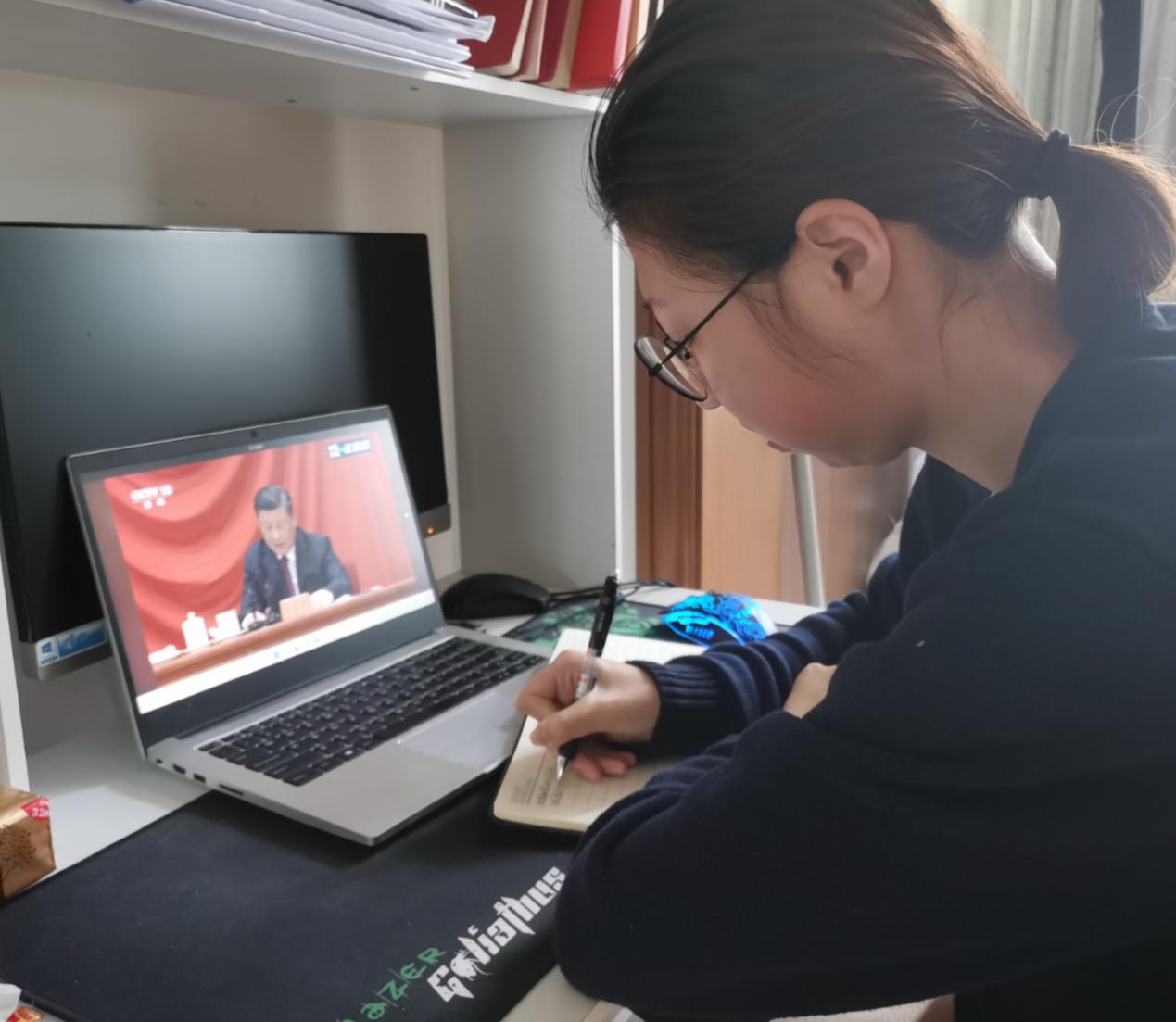 院团委、团总支、学生会、青马班学员、团学骨干、志愿者代表、团员青年代表等通过电视、广播、网络、新媒体等方式收听收看庆祝大会,认真学习习近平总书记重要讲话精神。