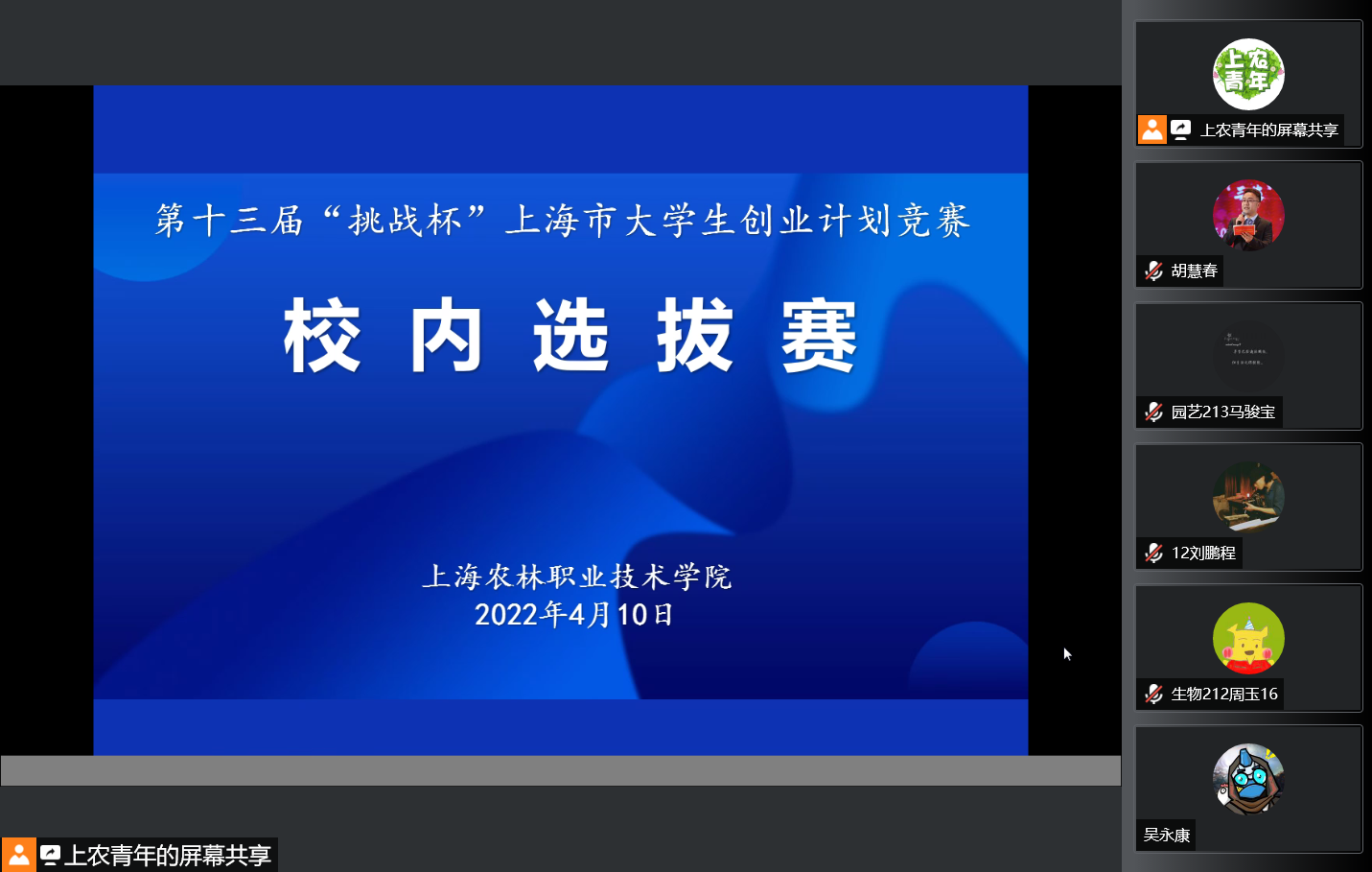 为进一步深化大学生创新创业教育,培养学生的创新意识、创业精神和实践能力,4月10日,院团委通过线上举行第十三届“挑战杯”上海市大学生创业计划竞赛校内选拔赛,学生处、团委、各系党总支、团总支、指导教师和项目团队成员等160余人参加。