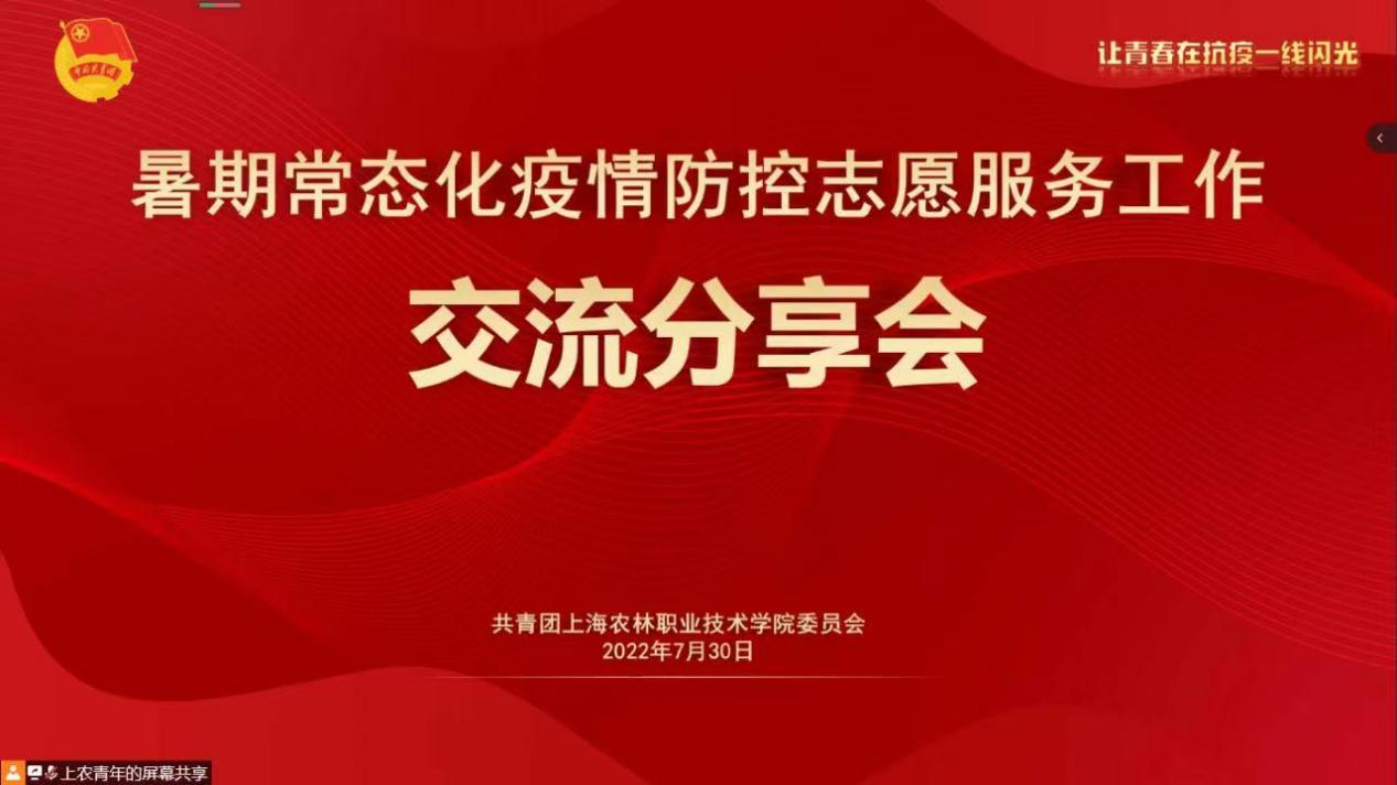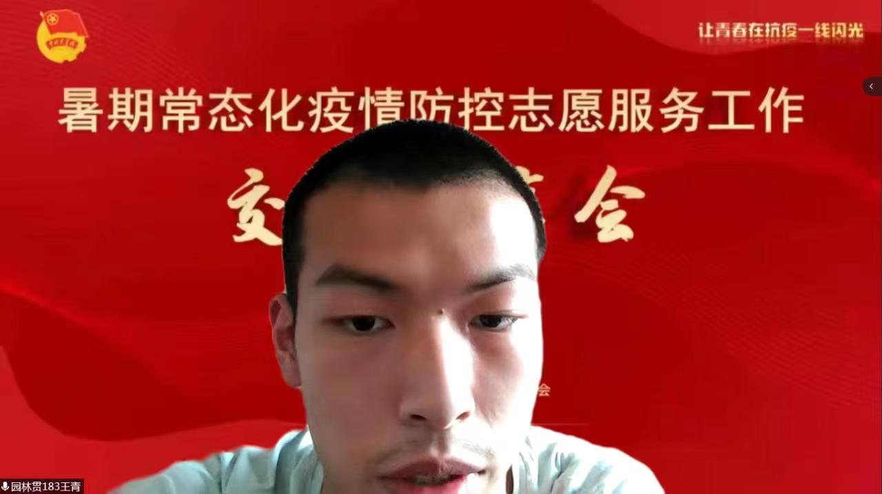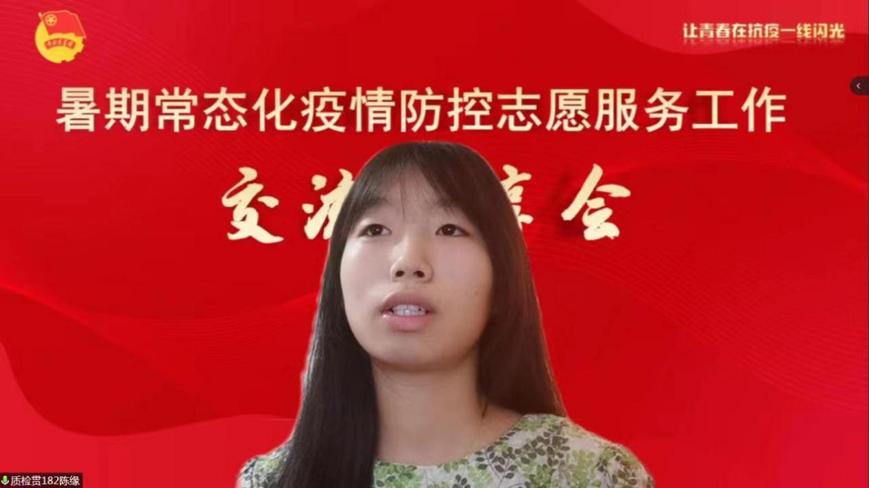 7月30日,院团委在线举行暑期常态化疫情防控志愿服务工作交流分享会,院团委、带队老师、全体防疫志愿者、青马工程学员以及院系团学骨干等80余人参加。