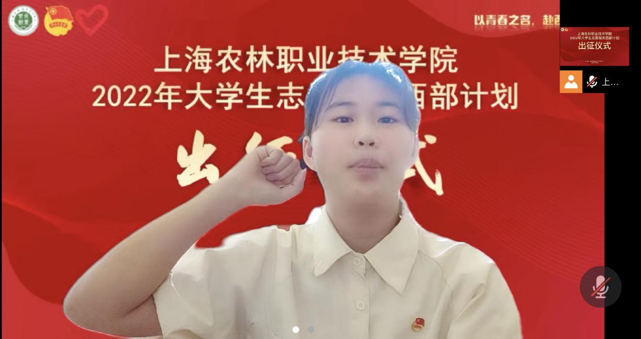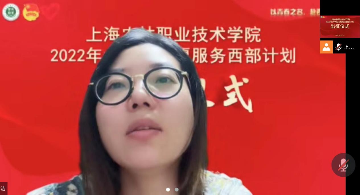 8月4日,院团委在线举行学院2022年大学生志愿服务西部计划出征仪式。学生处、团委、生物医药与健康系、西部计划工作负责老师以及环境191班张雨欣参加出征仪式。团委书记胡慧春主持出征仪式。