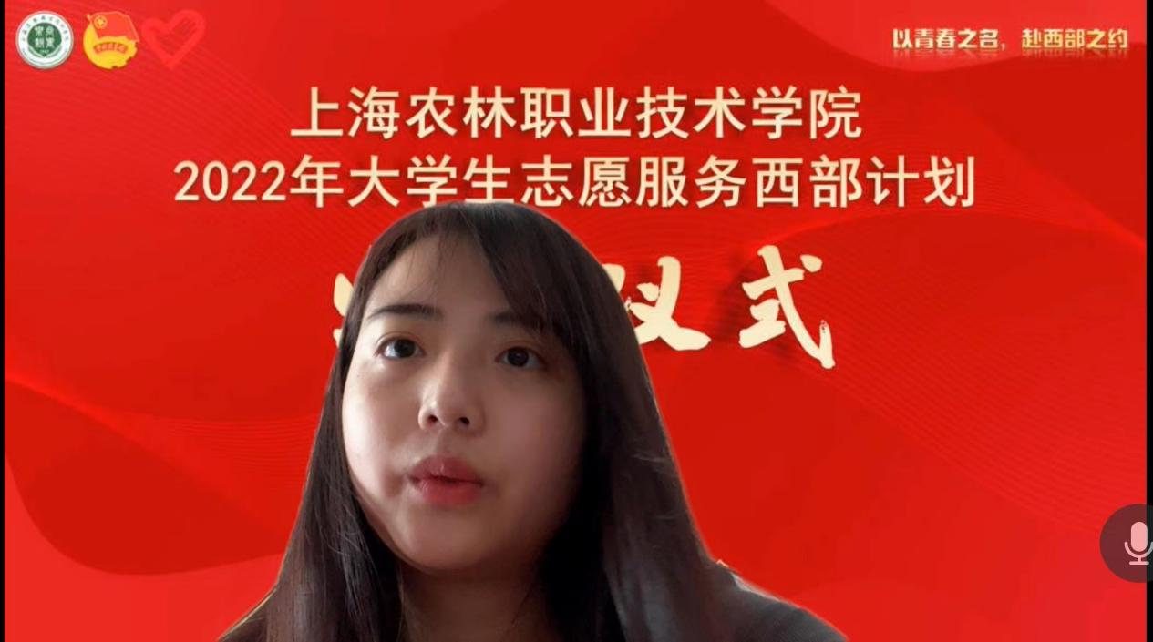 张雨欣同学在发言中表示:一定不负所托,坚守岗位,尽已所能,不计报酬,在服务期内踏实工作、热情奉献,将理论付诸实践,力争圆满完成各项工作和目标,展现上农青年风采,实现人生价值。