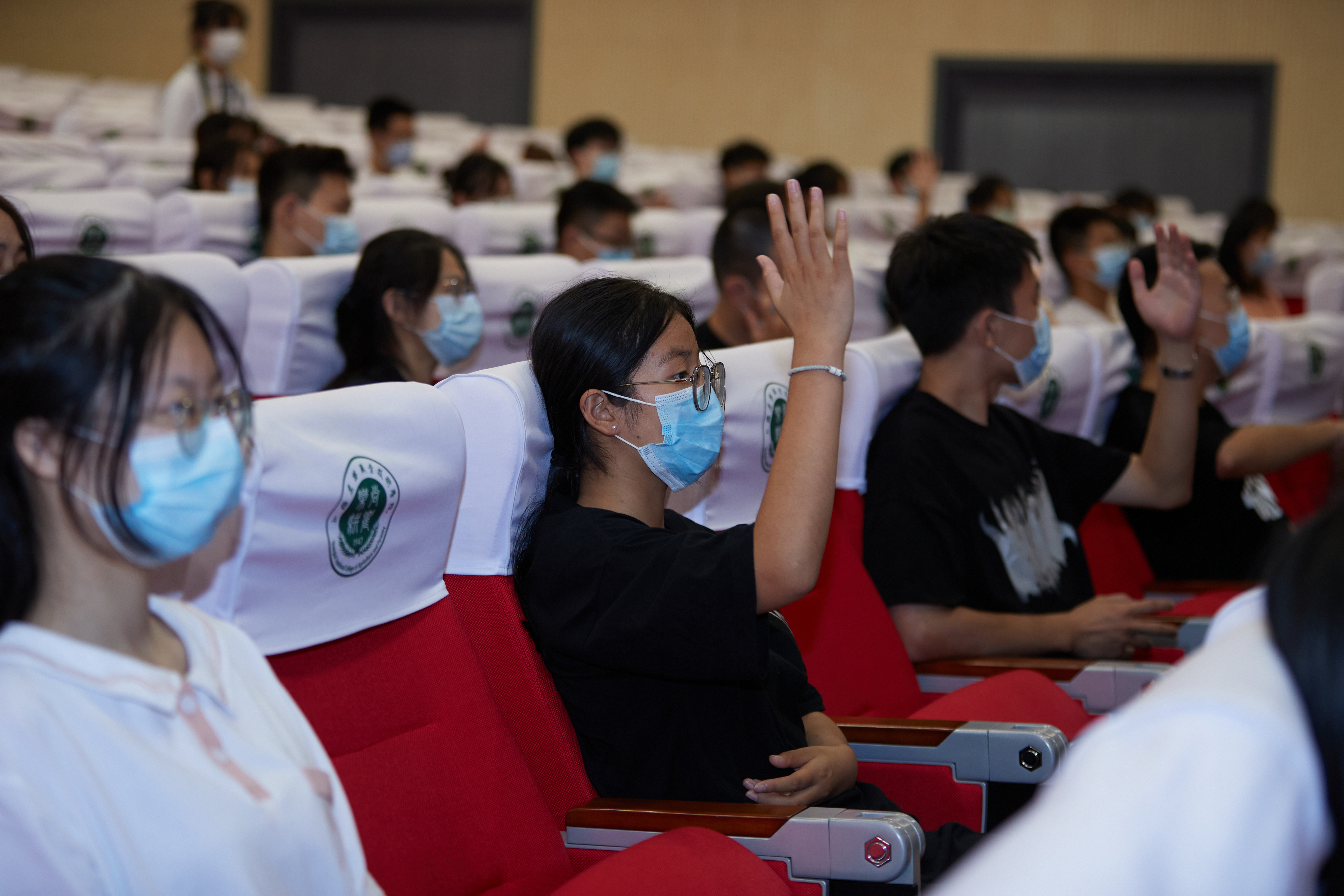 胡慧春以《有责任有担当,青春才会闪光》为题,通过“初心使命”“宝贵经验”“重大课题”“@共青团”“@新时代的共青团员”“@团干部”“殷切期待”等关键词,为全体新生传达学习了习近平总书记在庆祝中国共产主义青年团成立100周年大会上的重要讲话精神。“习近平总书记的重要讲话给了我们答案,告诉我们青年学生该如何去奋斗拼搏。”胡慧春告诉同学们,要做理想远大、信念坚定的模范,没有理想信念就没有动力,每位青年学生都要明确自己的人生定位,要为民族的伟大复兴而学习,为承担历史赋予的时代使命和责任而学习。