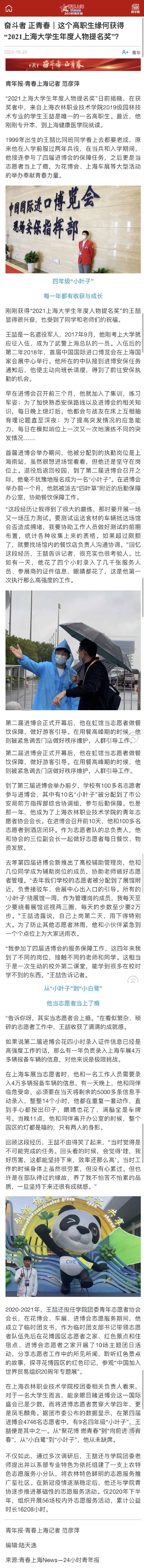刚刚获得“2021上海大学生年度人物提名奖”的王喆显得很兴奋,也受到了同学和老师们的祝福。