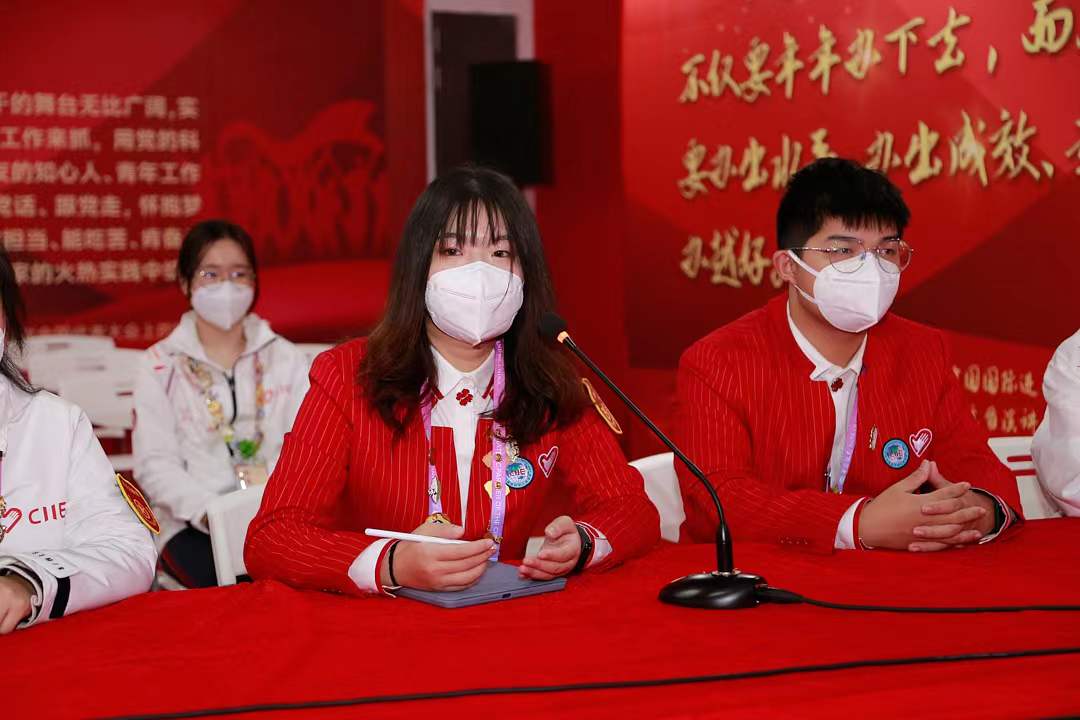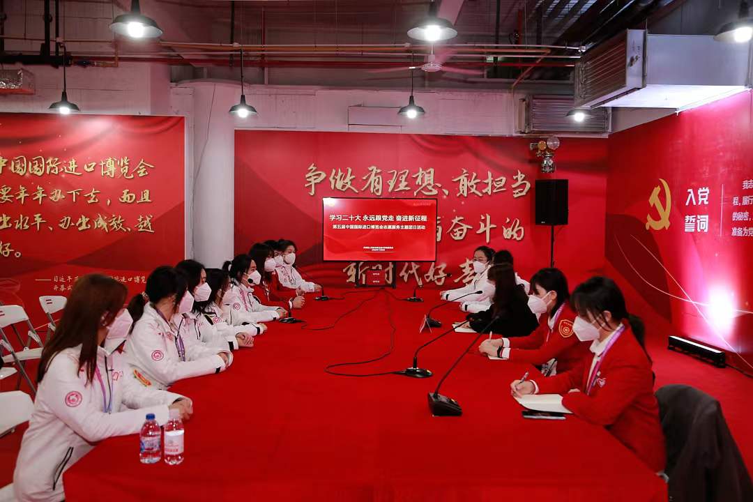 在志愿者之家信仰大厅,举行“学习二十大、永远跟党走、奋进新征程”第五届进博会主题团日活动,师生们一起学习党的二十大精神和第五届进博会开幕式上习近平主席致辞,小叶子们分享了自己的学习感悟,纷纷表示在开放的机遇下,作为进博会志愿者,向世界展示奉献、友爱、互助和进步的志愿精神,十分光荣与自豪。要牢记习近平总书记对青年“肩负历史使命,坚定前进信心”的嘱托,用实际行动向世界、向上海展现中国青年、上农青年的风采。