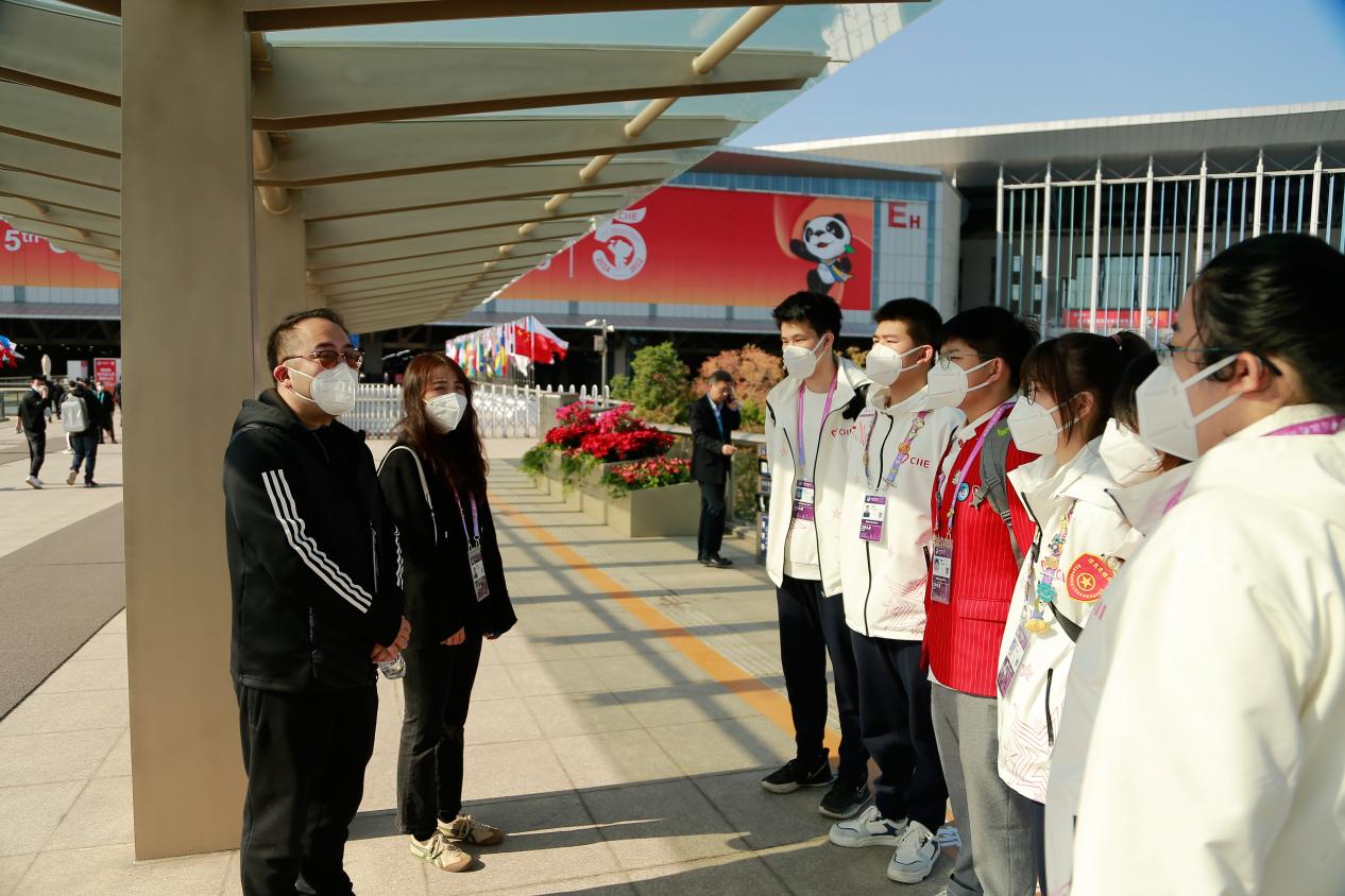 11月8日,学院团委书记、学工部副部长胡慧春来到国家会展中心,慰问学院正在第五届中国国际进口博览会服务岗位上工作的上农“小叶子”。