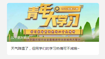 开展学习宣传贯彻党的二十大精神专题学习会,对全院共青团深入学习宣传贯彻党的二十大精神进行动员部署,印发《共青团上海农林职业技术学院委员会关于认真学习宣传贯彻党的二十大精神的通知》,构建涵盖“领、讲、导、赛、践”五位一体学习体系,分三个阶段组织化开展全面学习,坚持多形式、分层次、全覆盖,精心设计、扎实开展系列学习活动。