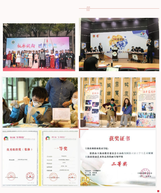 坚持“分类指导、百花齐放”。学生社团建设有序提升。定期修订《上海农林职业技术学院学生社团管理办法》和《上海农林职业技术学院学生社团指导教师管理办法》,45个学生社团积极开展“尚农杯”辩论赛、光盘行动、冬季体育活动月、垃圾分类宣传等,形成“一系一品”工作特色。多个社团创作的作品获全国第六届大学生艺术展演上海市活动、“汇创青春”上海大学生文化创意作品展示活动等市级荣誉80余项。