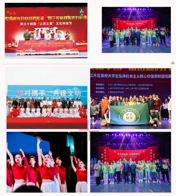 坚持“品牌引领、文化辐射”。注重以校史、校训、校歌等为载体,创新创造多元化富有“尚农乐耕”精神的文化精品,塑造“博学悟道”的育人氛围。每年举办“上农之春”文化科技节,增强广大师生对中华文化的自信和认同,一批主打项目取得良好社会效应,文化育人的功能充分得到体现;原创农业剧《三农有梦,青春无悔》,以世界技能大赛优胜奖获得者我院杨灵芝教师的故事为原型,刻画职业教育的“广阔前途,大有可为”,每年在校内外进行公演,并荣获2022年松江片区学生弘扬社会主义核心价值观校园短剧展演活动一等奖;创作和开展以“农”为中心的艺术作品,每年举办大学生书画展,宠物嘉年华、生态环境创意设计大赛等,组织“高雅艺术进校园”活动,大学生艺术团赴周边街镇、社区开展文化宣传演出活动,服务基层群众的精神文化生活。