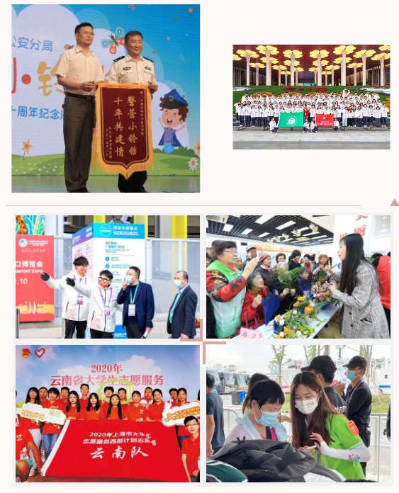 砥砺奋斗前行,上农志愿服务“金名片”不断擦亮。构建校内完备志愿服务体系,24支志愿者服务队形成10大品牌,组织8000余人次参与花博会、犬博会、国际车展、轨道交通等各类志愿服务;组织524名上农“小叶子”服务五届进博会,以极高的热情、饱满的状态、高质量的服务获得团市委、院党委高度肯定,优秀事迹受到新华社、人民日报、学习强国、上海日报、澎湃新闻、青年报、青春上海、上海青年志愿者、青春松江等数10家媒体平台60余次报道宣传;选派“西部计划”志愿者7名,前往云南、新疆等地开展志愿服务;每年与松江公安分局共同承办“警营小铃铛”,选派100余名志愿者参与全市多个街镇“爱心暑托班”,累计服务小学生2000余名。