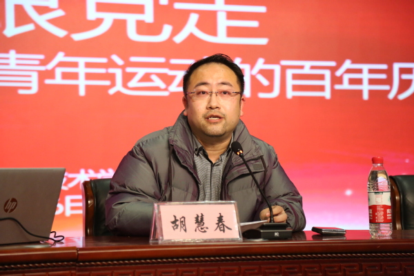 胡老师表示,百年来,中国共产党始终高度重视青年、关怀青年、信任青年,始终代表广大青年、赢得广大青年、依靠广大青年,团结带领一代代青年为实现中华民族伟大复兴的中国梦接续奋斗,推动中国青年运动始终与国家同呼吸、与人民共命运、与时代齐奋进,书写了百年党史中闪光的青春篇章。同学们要学深学透党的青年运动史,并把学习作为一种责任、一种精神追求、一种生活方式,坚定理想信念,练就过硬本领,汇聚青春正能量,在青春的赛道上奋力奔跑,争取跑出当代上农青年的最好成绩。