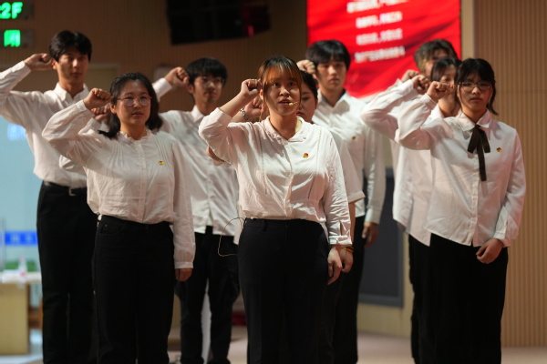 集会中,各系青年代表演绎了微团课展示《我们的青春》,团委兼职副书记齐雪飞带领全体师生一同重温入团誓词,进一步牢记初心使命,践行青春誓言。最后,在团歌《光荣啊,中国共青团》的歌声中,集会落下帷幕。