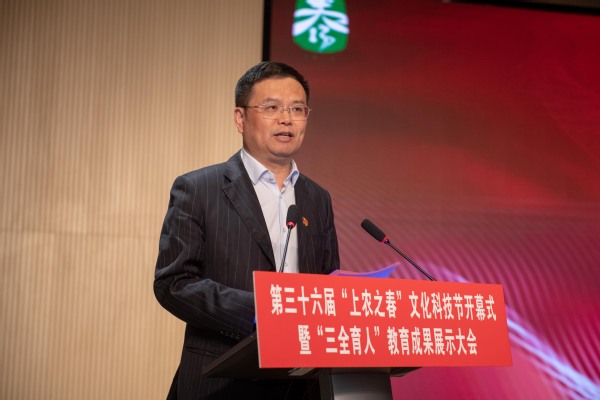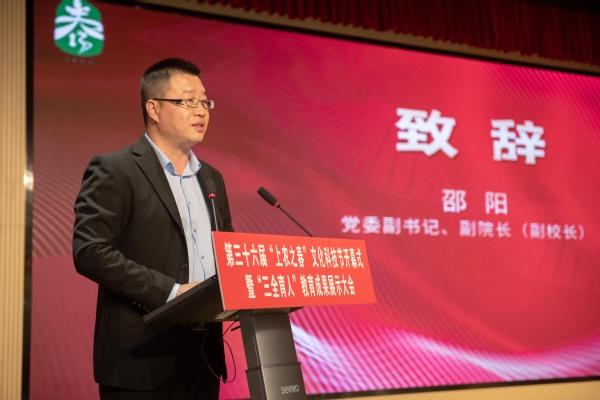 党委副书记、副院长(副校长)邵阳在开幕式致辞时表示高校作为文化建设的重要阵地,要把推进文化自信自强贯穿立德树人全过程,在人才培养中特别要重视利用中华优秀传统文化厚植大学生的文化自信和人文情怀。一年一度的“上农之春”文化科技节是学院最有影响、参与师生最多的校园文化活动之一,通过活动开展,用中华优秀传统文化引导学生、教育学生坚定理想信念、厚植爱国情怀、加强品德修养、涵养优良学风,营造创新氛围。