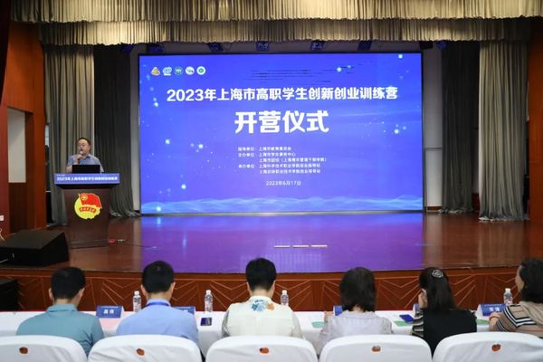 6月17—18日,2023年上海市高职学生创新创业训练营在上海市团校(上海青年管理干部学院)青年会堂举行。上海市团校(上海青年管理干部学院)党委委员、副校长朱红、上海市学生事务中心双创服务部部长姚栋华、双创服务部副部长宋琦出席训练营开营仪式。来自全市22所高职院校共90余名师生共同参加了开营仪式。仪式由上海农林职业技术学院团委书记、学工部副部长胡慧春主持。